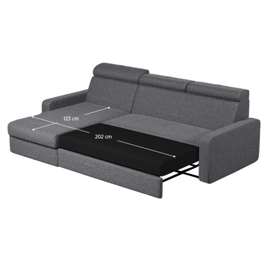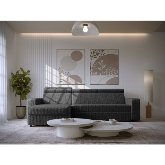 Materiál: látka Poso 60 Oděruodolnost textilie podle testu Martindale: 90 000 oděrů Barva: šedá Rozměry (ŠxHxV): 236x170x68/79 cm Plocha na spaní (ŠxD): 123x202 cm Výška sedu: 43 cm Hloubka sedu: 56 cm Rozměry otomanu (ŠxH): 74x129 cm Rozměry opěrky na ruku (ŠxHxV): 17x94x57 cm Šířka sedáku: 134 cm Levé provedení Celočalouněná Rozkládací Rohová S úložným prostorem Na nožičkách Materiál nožiček: plast Barva nožiček: černá Výška spodního prostoru od podlahy: 4,5 cm Výplň: pružina falista/pur pěna Polohovatelné opěrky hlavy 6 stupňové polohování opěrek Praktická Moderní Dodáváno v demontu