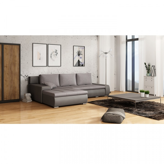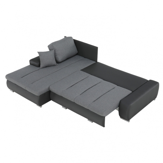 Univerzální (L / P) rohová rozkládací sedací souprava s úložným prostorem Materiál: látka SAVANA/ ekokůže Barva: šedá Rozměry (ŠxHxV): 257x180x83 cm, spaní: (ŠxD): 149x206 cm Výška spodního prostoru od podlahy: 5 cm Dodávané v demontu