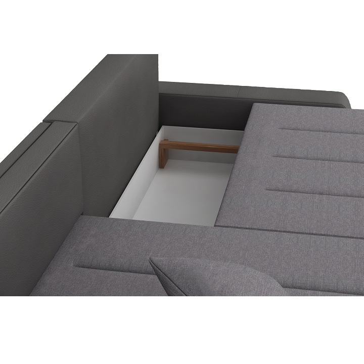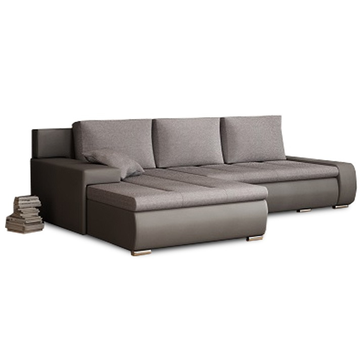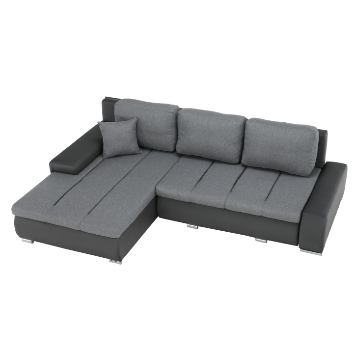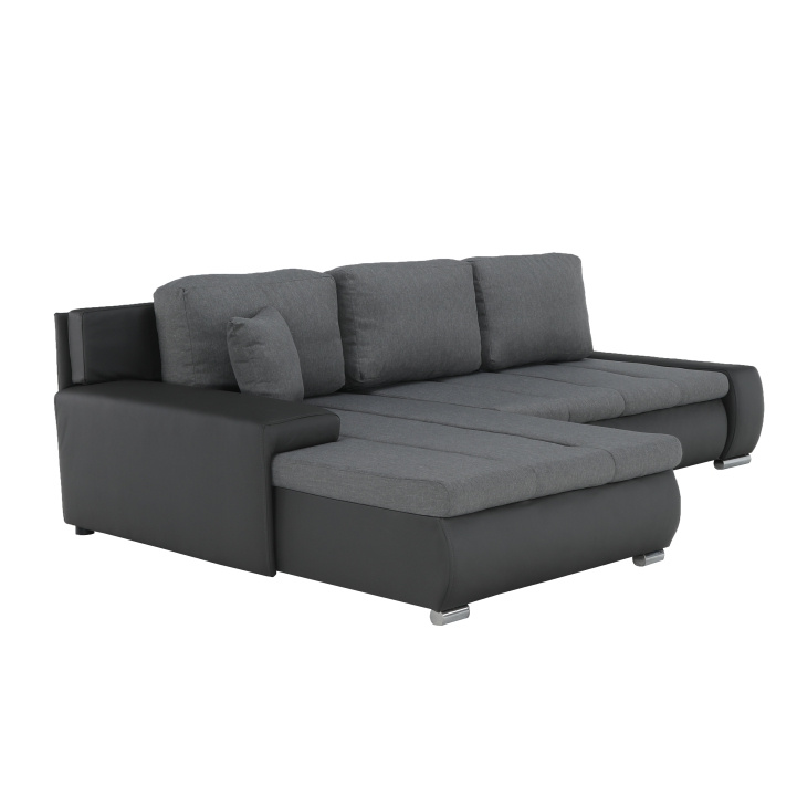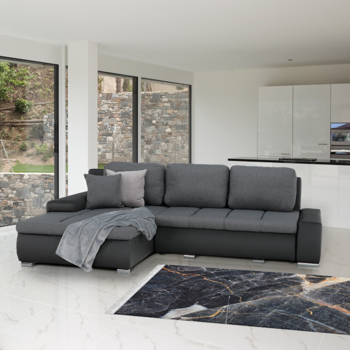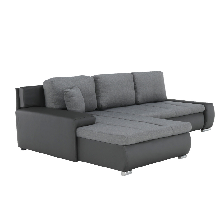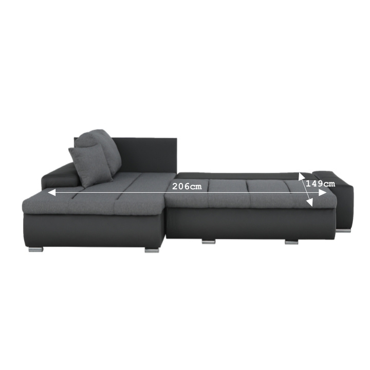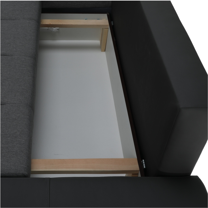 Univerzální (L / P) rohová rozkládací sedací souprava s úložným prostorem Materiál: látka SAVANA/ ekokůže Barva: šedá Rozměry (ŠxHxV): 257x180x83 cm, spaní: (ŠxD): 149x206 cm Výška spodního prostoru od podlahy: 5 cm Dodávané v demontu