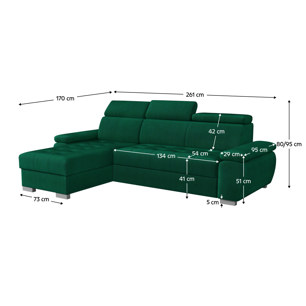 Rohová sedací souprava, zelená, levá, SEMI ROH