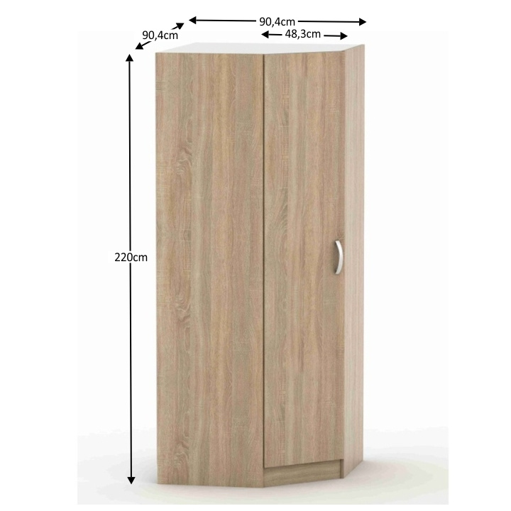 Rohová skříň BETTY 2 Materiál: DTD laminovaná Barva: dub sonoma Rozměry (ŠxHxV): 90,4x90,4x220 cm Dodávané v demontu.