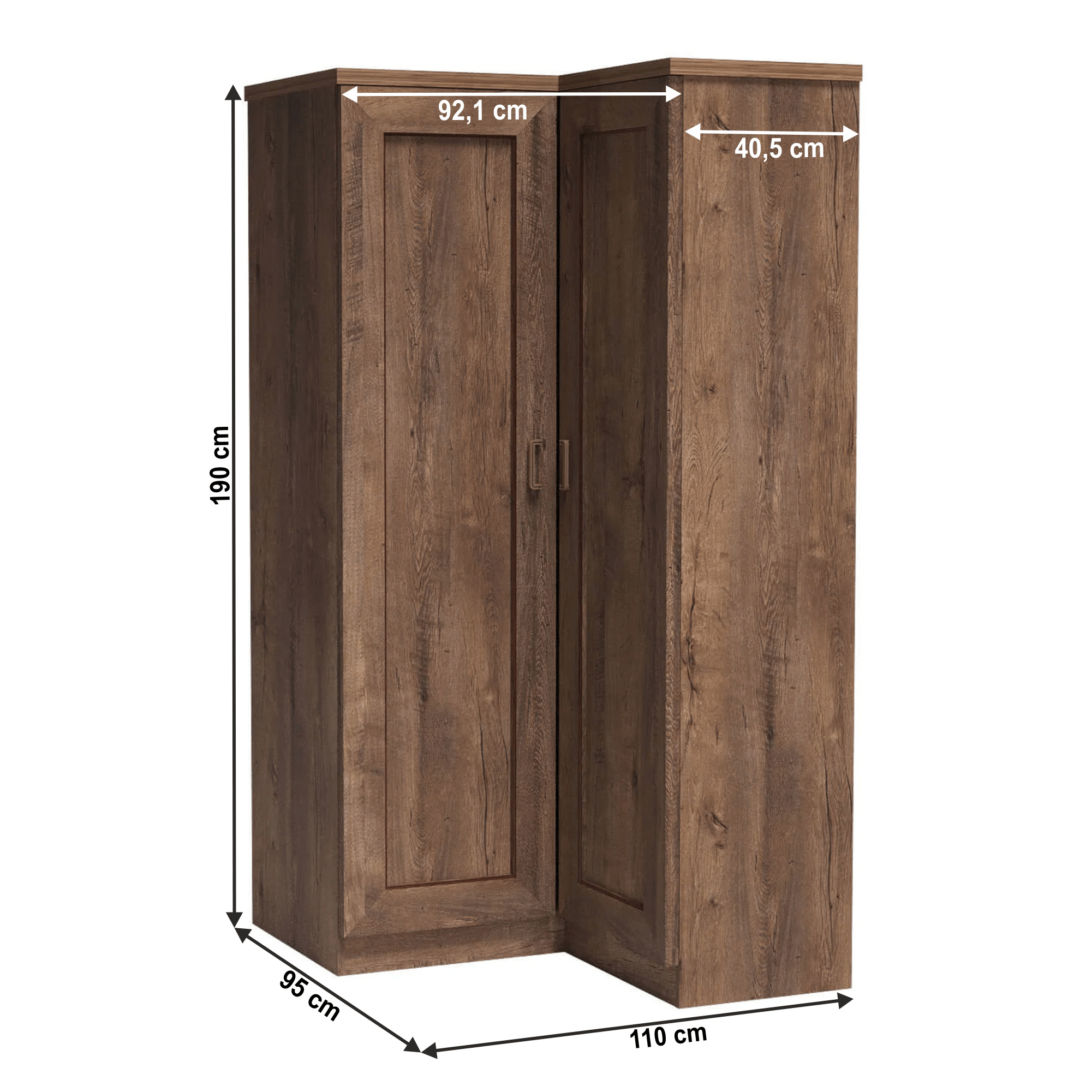 Rohová skříň, věšáková s policemi TEDY TYP T25 Materiál: laminovaná DTD/fóliovaná MDF/kov Barva: dub lefkas Rozměry (ŠxHxV): 110x95x190 cm Tloušťka materiálu: 32 mm Tloušťka materiálu zbývající části: 16 mm ABS hrany Rustikální styl Ozdobné lišty Kovové úchytky věšáková část Policová část Levé provedení Na objednávku Dodací lhůta 8-10 týdnů Dodáváno v demontu