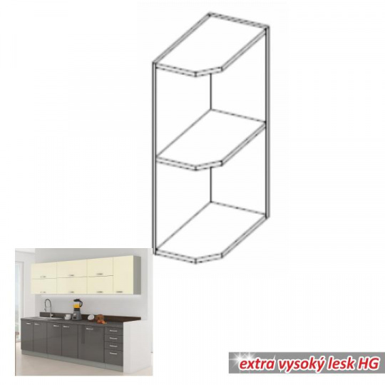 Rohová skříňka s policemi, dolní, šedá, PRADO 30 D ZAK BB