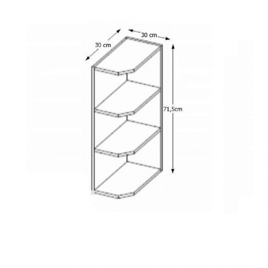 Horní rohová police PRADO 30 G ZAK-72 Materiál: laminovaná DTD Barva: šedá Rozměry (ŠxHxV): 30x71,5x30 cm Rohová Tři police Bez pracovní desky Systém tichého dorazu zásuvek Systém tichého zavírání dvířek Dodáváno v demontu Sektorové skříňky jsou dodávány bez pracovní desky včetně spodní lišty. Možnost dokoupit PD metalic brown v ceně 1.650 Kč/1m. K našim kuchyňským skříňkám si můžete objednat i dřezy, baterie a příslušenství.