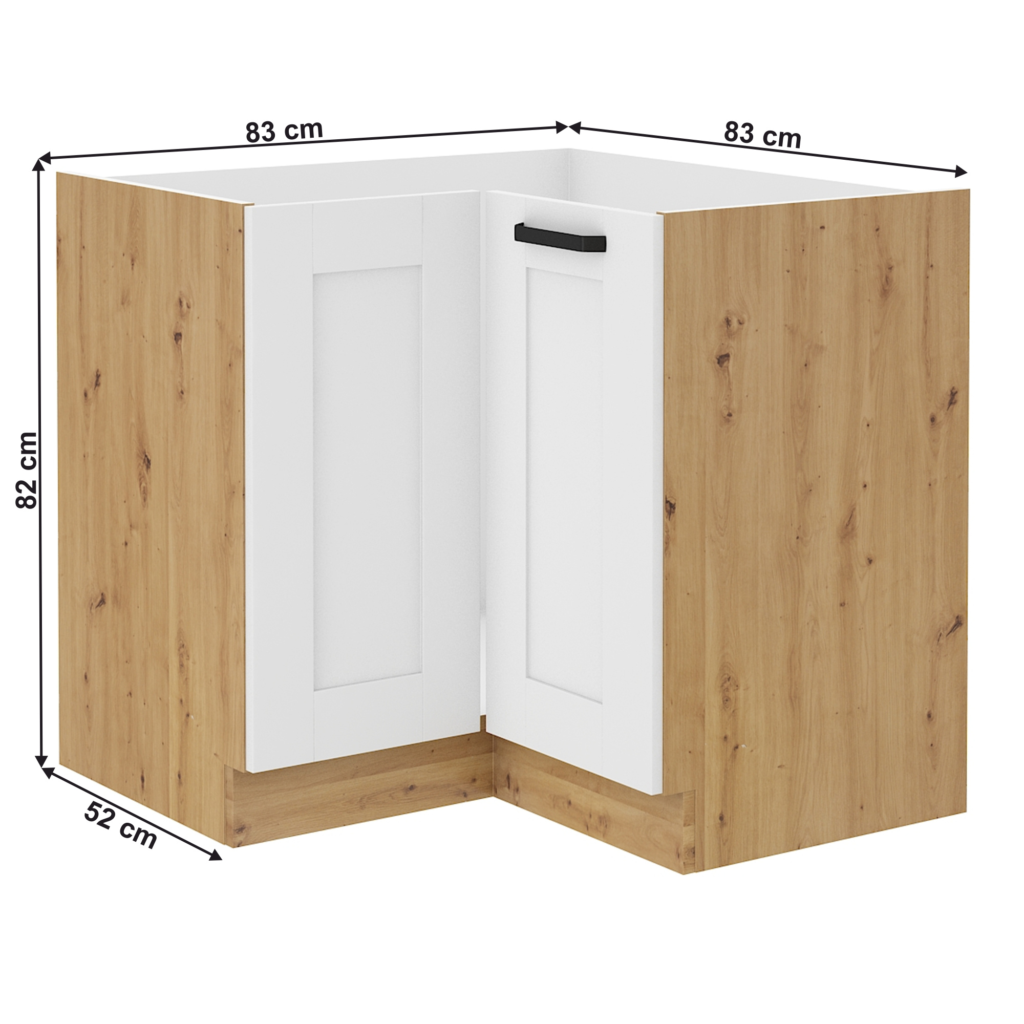 Rohová spodní skříňka, bílá/dub artisan, LULA 89x89 ND 1F BB