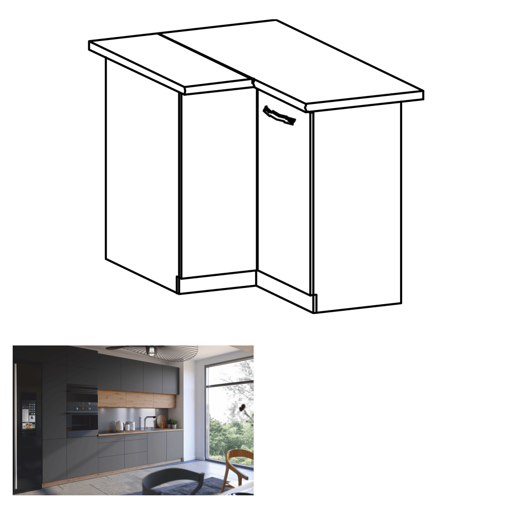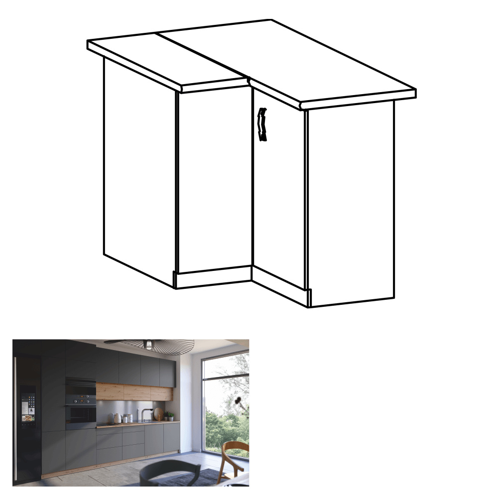 Rohová spodní skříňka, dub artisan/šedý mat, LANGEN D90N