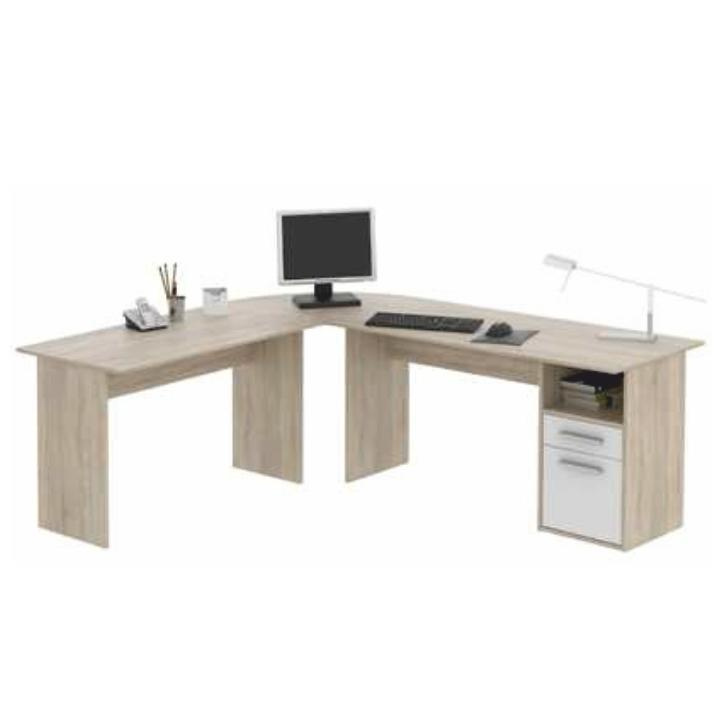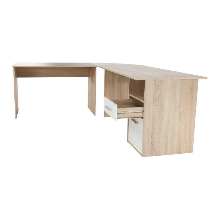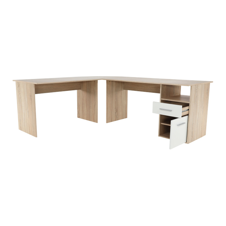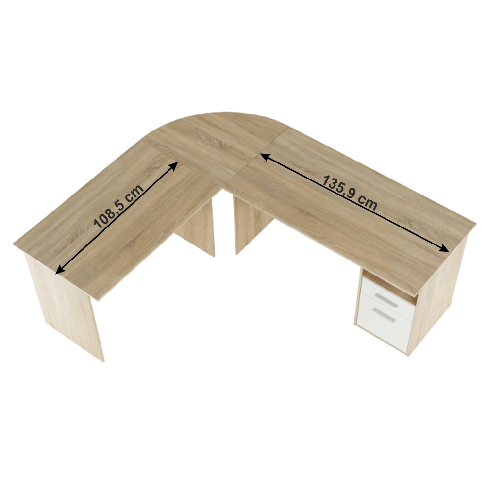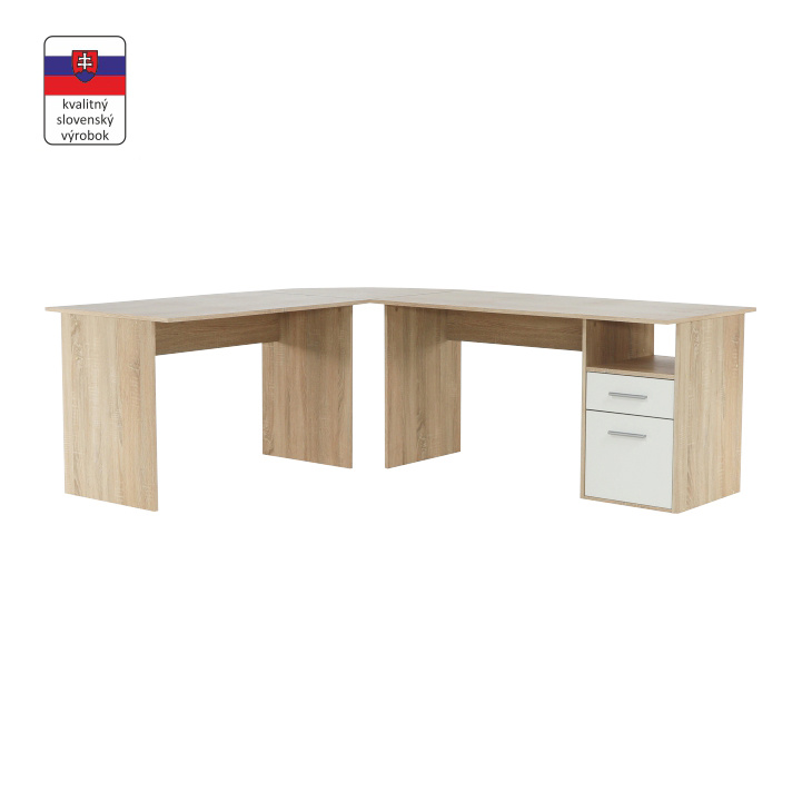 Rohový PC stůl, dub sonoma / bílá, Maurus NEW MA11