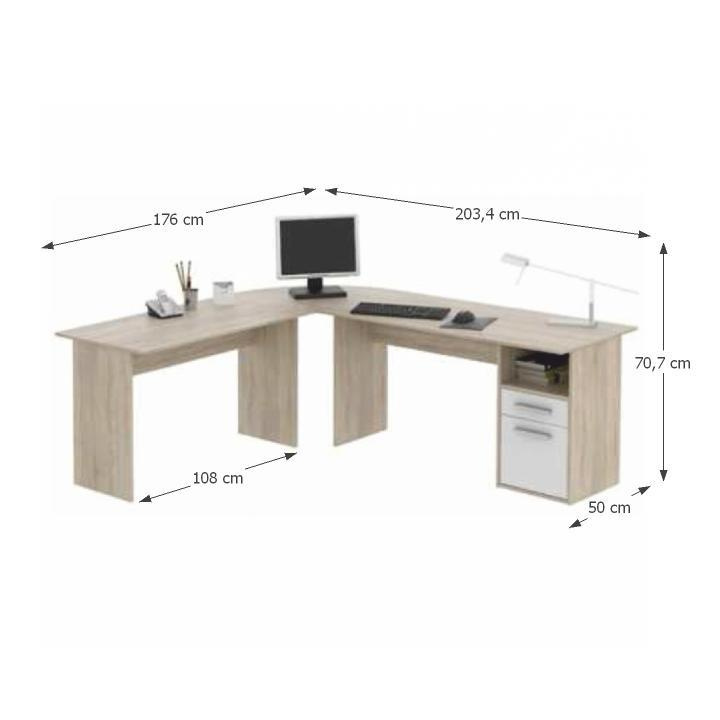 Materiál: laminovaná DTD Barva: dub sonoma / bílá Rozměry (ŠxHxV): 203,4x175,9 x70,3 cm Tloušťka materiálu: 16 mm Šířka stolu s kontejnerem: 135,9 cm Šířka stolu bez kontejneru: 108,5 cm Šířka stolu po kontejner: 93,4 cm Hloubka stolu: 67,4 cm Šířka kontejneru: 40,3 cm Výška šuplíku: 13,8 cm Výška skříňky: 32 cm Výška spojovací desky (čela): 18,6 cm šuplík skříňka Kvalitní slovenský výrobek Dodávané v demontu