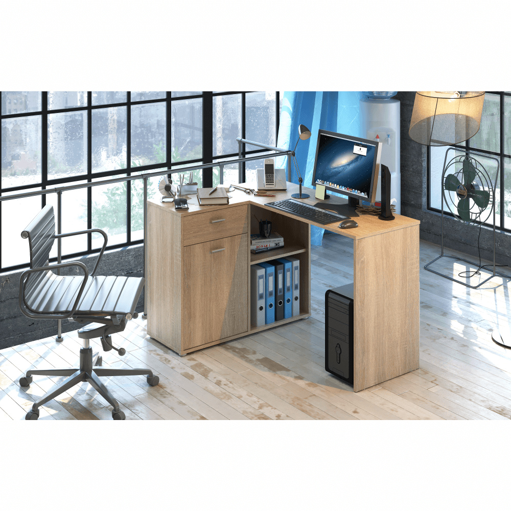 Rohový PC stůl, dub sonoma, KALIMERO