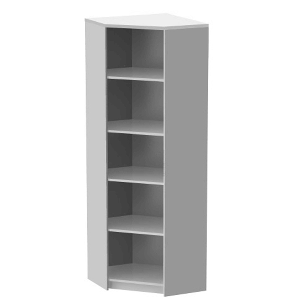 Rohový kancelářský regál JOHAN 2 NEW 09 se čtyřmi policemi Barevné provedení: bílá Materiál: DTD lamiovaná Rozměry (ŠxHxV): 62,7x62,7x186 cm Tloušťka materiálu: 16/22 mm slovenský výrobek ABS hrany Dodávané v demontu