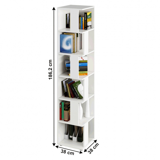 víceúčelový rohový regál Korind Materiál: DTD laminovaná Barva: bílá Rozměry (ŠxHxV): 38x38x186,2 cm Hmotnost: 29 kg Kvalitní slovenský výrobek 6 polic Nejlepší umístění do kouta místnosti Do obývacího pokoje, dětského pokoje, ložnice, předsíni, pracovny apod. Dodávané v demontu