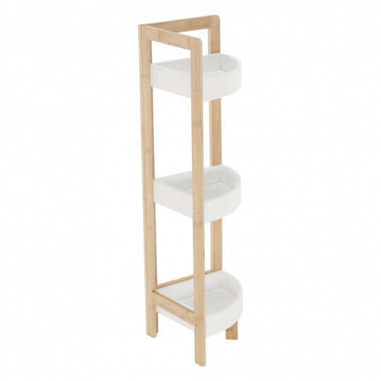Regál VEGO Materiál: MDF bílá / bambus lakovaný Rozměr (ŠxHxV): 30x18,5x81 cm Tloušťka materálu: 12 mm Dodávané v Demonte Hmotnost: 3.2kg