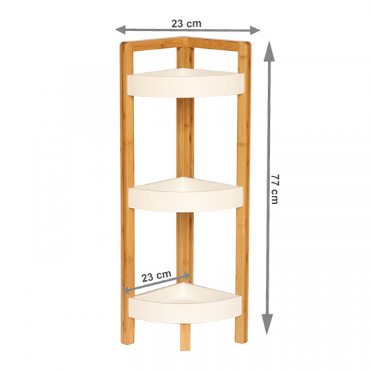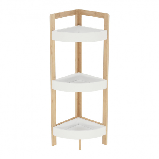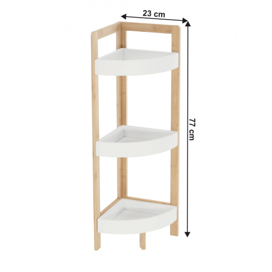 Rohový regál FONG Materiál: MDF / lakovaný bambus Barva: bílá / přírodní bambus Rozměry (ŠxHxV): 23x23x77 cm Dodávané v demontu.