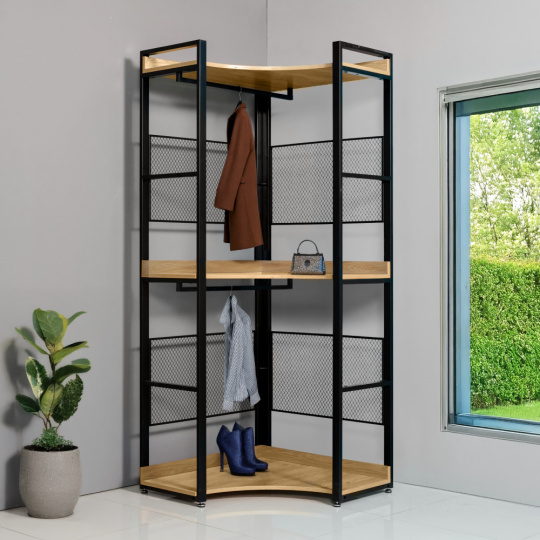 Rohový regál s policí, dub/černá, KILOS NEW TYP 5