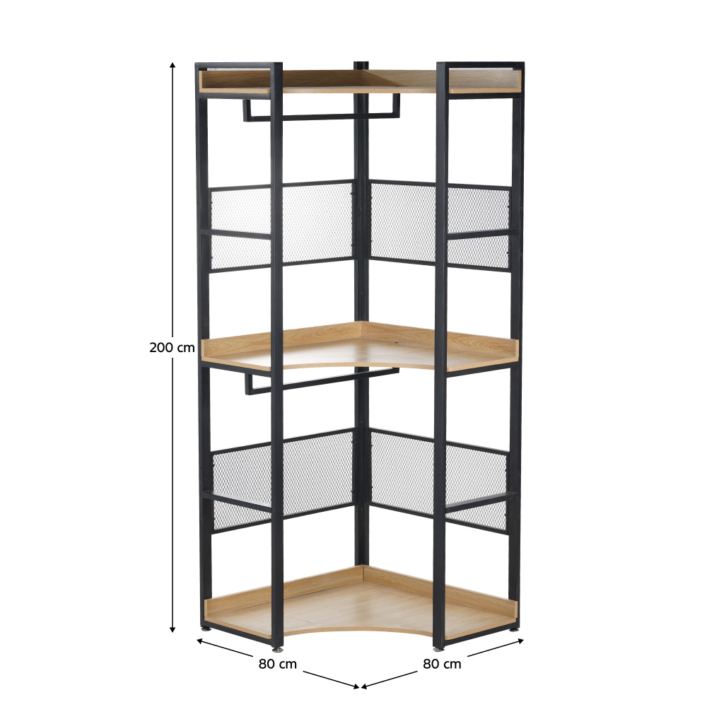 Rohový regál s policí, dub/černá, KILOS NEW TYP 5