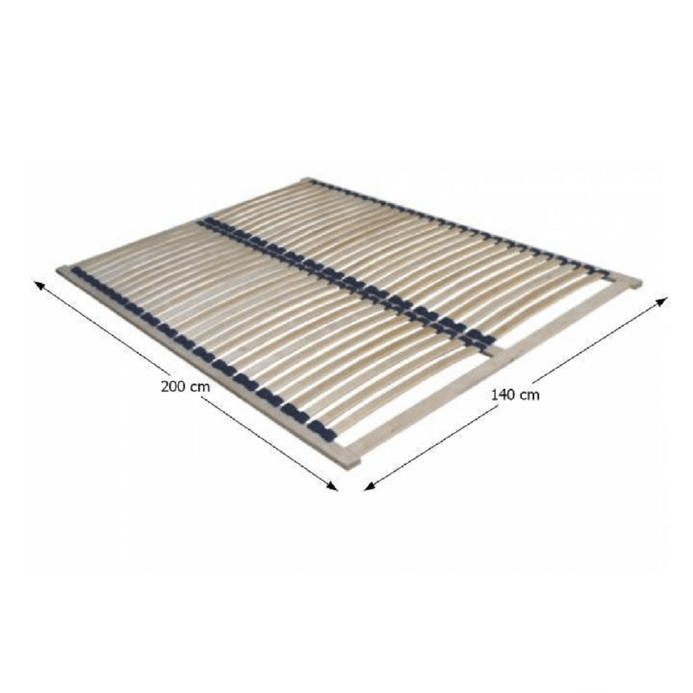 rošt, ohýbané lamely, březové dřevo, osazené v plastových pouzdrech na rámu roštu, ideálně se přizpůsobuje tvaru a hmotnosti těla, což poskytuje plný komfort spánku a garantuje zdravý odpočinek, doporučujeme do dvojlůžka, počet lamel: 28, se středovou dělící lištou, rozměry: 140x200 cm. Tloušťka roštu: 2 cm Rošt není samonosný. Každý rošt je o 1 cm užší a 4 cm kratší od udaného rozměru. 90x200 = 89x196 cm.