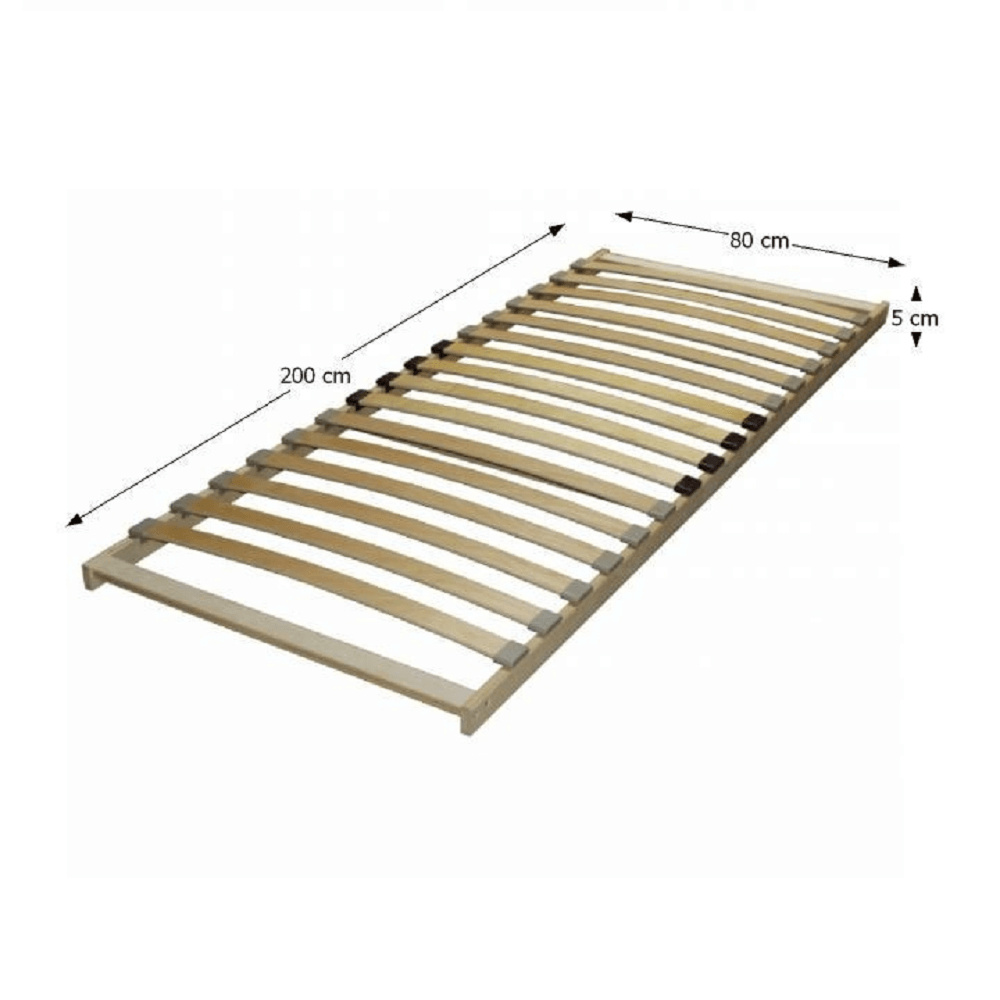 Materiál: lamely Barevné provedení: březové dřevo / plastové pouzdra Rozměry (ŠxV): 80x200 cm Tloušťka roštu: 5 cm Počet lamel: 16 V pevném rámu Osazené v plastových pouzdrech na rámu roštu Doporučujeme kombinovat s pružinovými matracemi Nosnost: max. 120 kg Rošt není samonosný Dodávané v demontu Každý rošt je o 1 cm užší a 4 cm kratší od udaného rozměru. 90x200 = 89x196 cm.