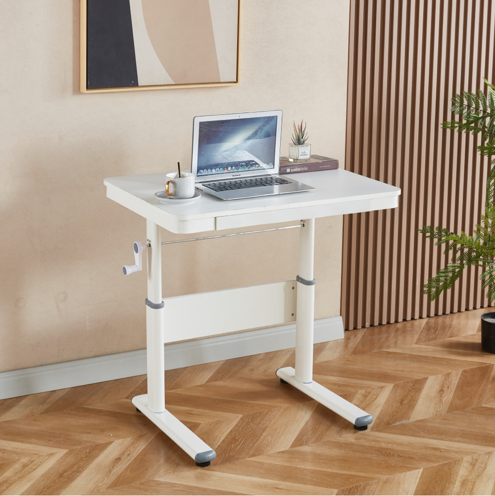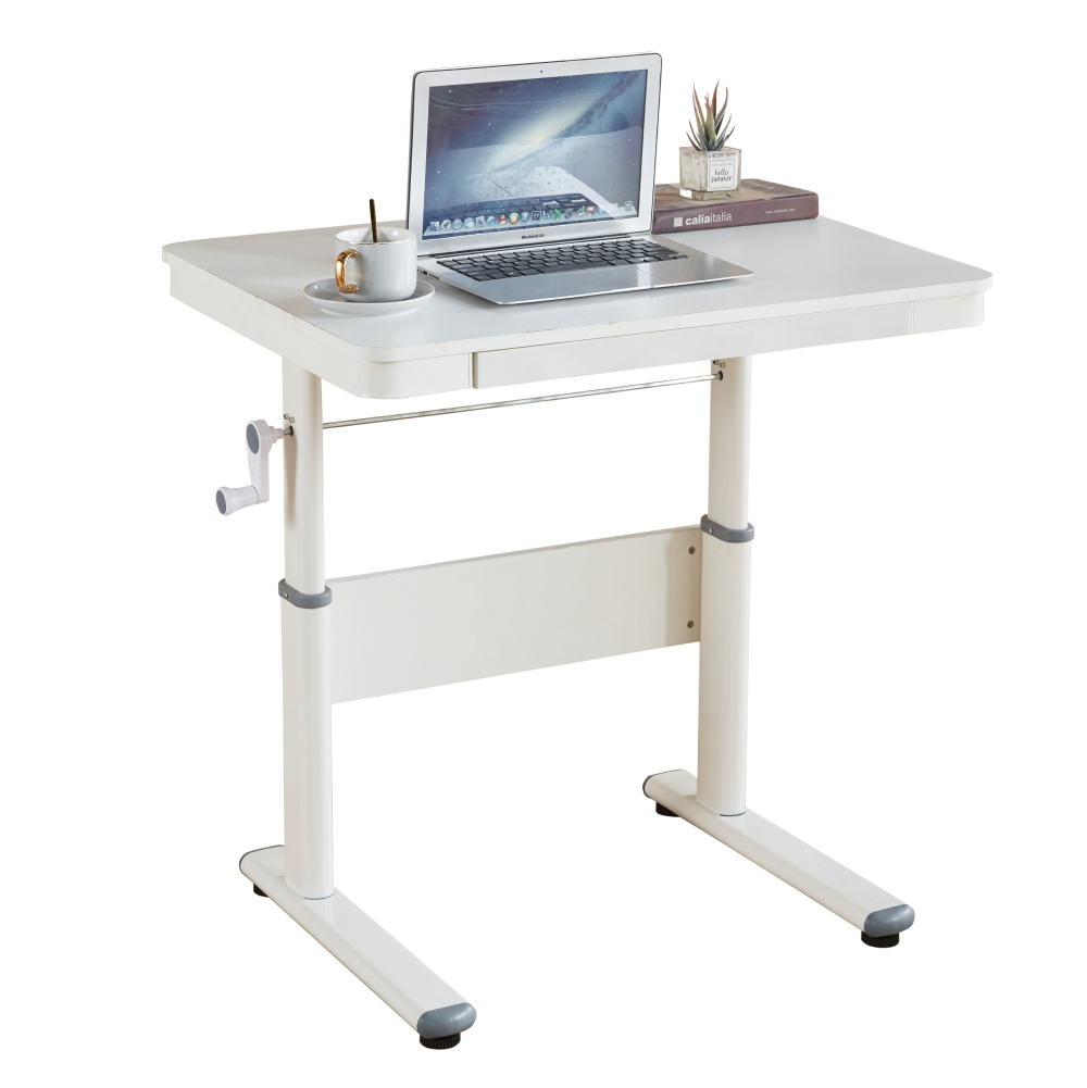 Materiál: MDF/PVC fólie/kov Barva: bílá Rozměry stolu (ŠxHxV): 80x60x63-88 cm Tloušťka materiálu MDF s PVC fólií: 1,5 cm Nosnost: 30 kg Hmotnost: 15,3 kg Vhodné od 3 do 18 let Nastavitelná výška stolu Manuální nastavení výšky stolu pomocí kliky Jeden šuplík Vnitřní rozměry šuplíku (ŠxHxV): 50x30x3,5 cm Dvě malé přihrádky na pera Kovové kolejničky Otvor pro provedení kabelů Dodáváno v demontu