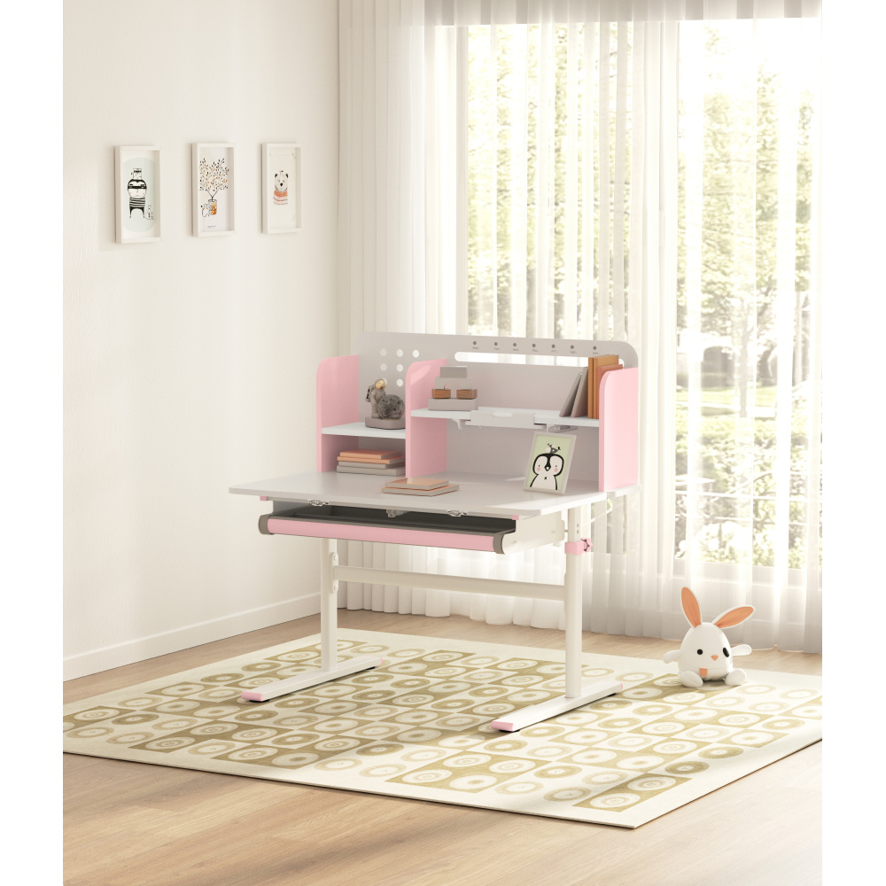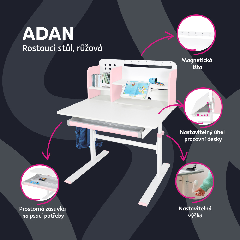 Rostoucí psací stůl, růžová/bílá, ADAN