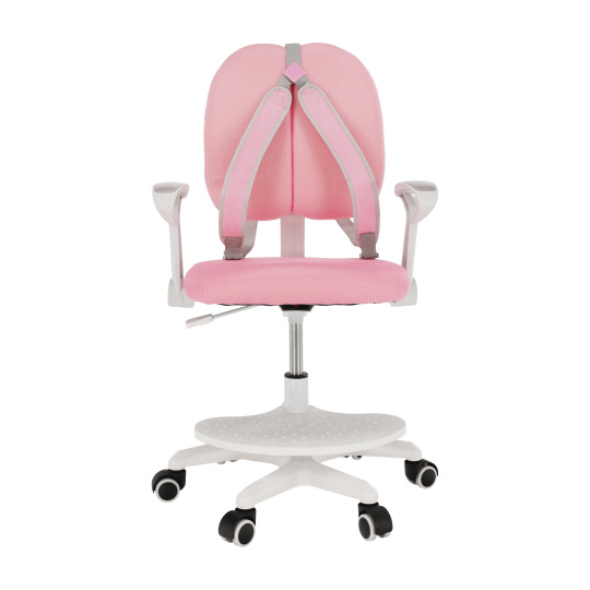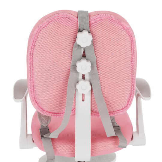 Materiál čalounění: síťovina Oděruodolnost textilie podle testu Martindale: 90 000 oděrek Barva: růžová Materiál konstrukce: plast Barva: bílá Rozměry (ŠxHxV): 58x55x83-89-102 cm Nastavitelná výška sedu: 37-50 cm Šířka sedu: 45 cm Opěrka zad (ŠxV): 40x39 cm Nosnost: 90 kg Otočná rostoucí židle Nastavitelná výška sedu Nastavitelná hloubka sedu Opěrky na ruce s funkci sklopení dozadu Se sklopenými opěrkami křeslo zasunete pod stůl Podnož na nohy s nastavitelnou výškou Podnož je odnímatelná Součástí opěradla jsou šle Šle zvyšují bezpečnost během sezení Šle pomáhají ke správnému držení těla Šle jsou snímatelné Univerzální kolečka Kolečka vhodná pro měkké i tvrdé podlahy Kolečka mají bezpečnostní pojistku (brzda) Když dítě sedí v křesle, kolečka jsou zajištěny, s křeslem se nedá hýbat Dodávané v demontu
