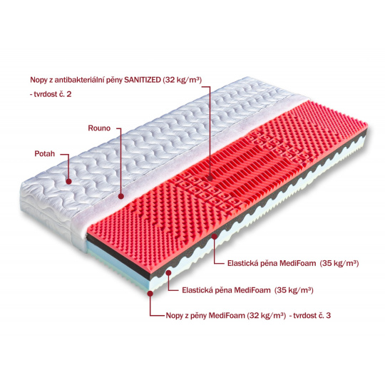 | výška včetně potahu | úplet, Aloe Vera | SilverGuard, Lyocell, Medicott, Levandule |
