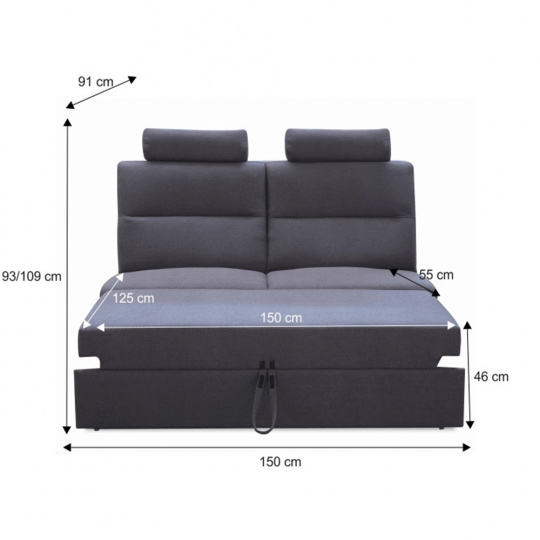 Rozkládací část s opěrkami hlavy, šedá látka, na objednávku, BORN 3 BB ZF ZZ