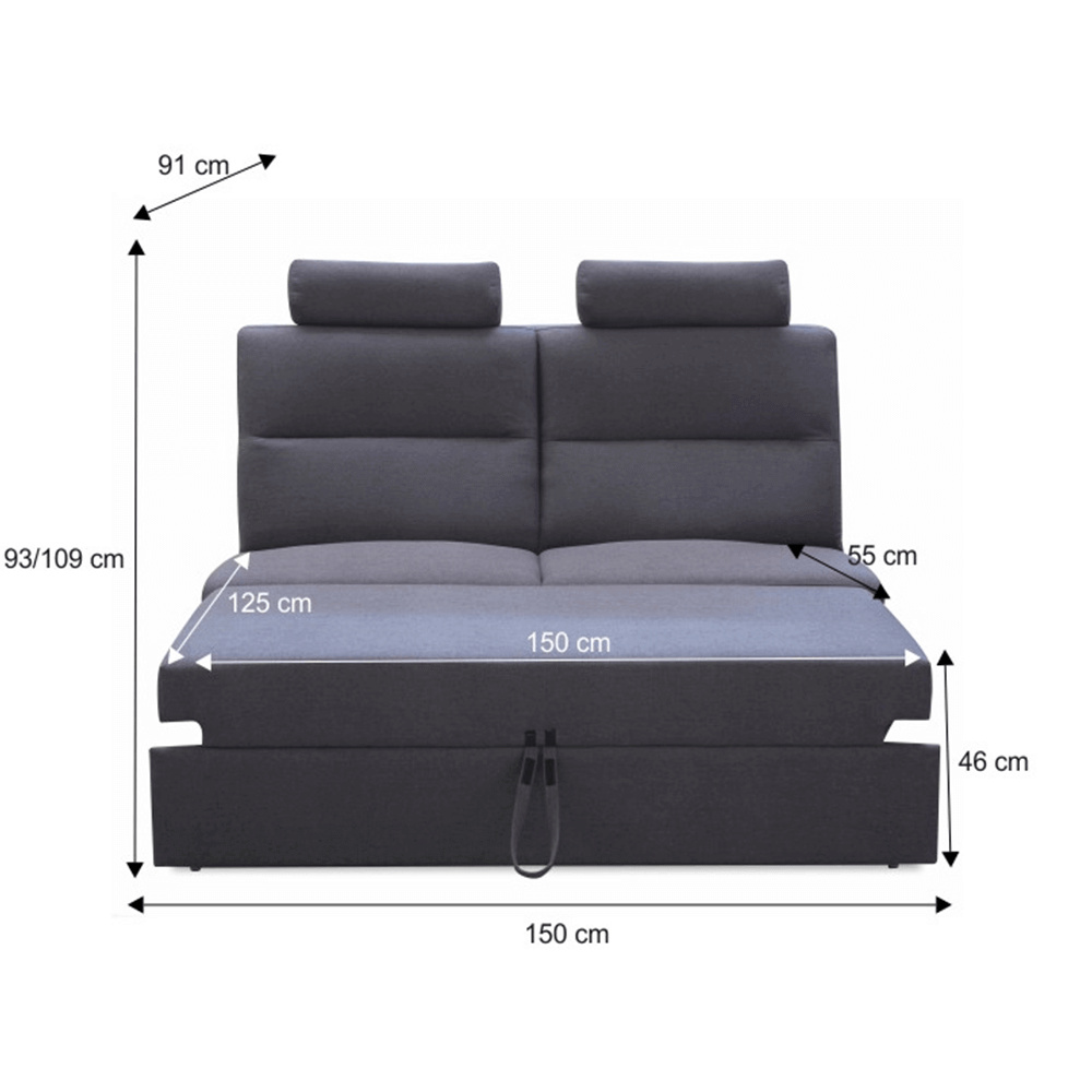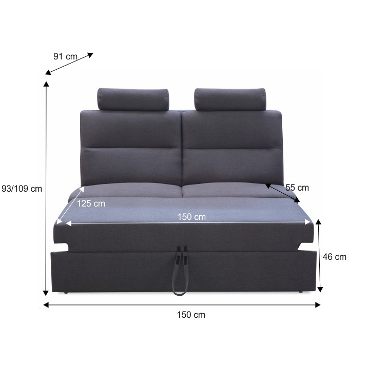 Rozkládací část s opěrkami hlavy, šedá látka, na objednávku, BORN 3 BB ZF ZZ