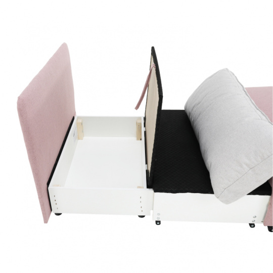 ;"Materiál: látka Cablo Oděruodolnost textilie podle testu Martindale: 72 000 oděrek Barva: růžová 12 / světlešedá 13 Rozměry (ŠxHxV): 100x87x90 cm Plocha na spaní (ŠxD): 100x190 cm Výška sedu: 45 cm Výška spodního prostoru od podlahy: 5 cm Hloubka sedu s polštářem: 55 cm Hloubka sedu bez polštáře: 78 cm Výška lůžka po rozložení: 35 cm Podpěrný polštář (ŠxV): 100x40 cm Nosnost: 70 kg S úložným prostorem funkce rozkládání Molitanová výplň sedáku Dodávané s polštářem Polštář se vzorem Na nožičkách, kolečka Dodávané v demontu