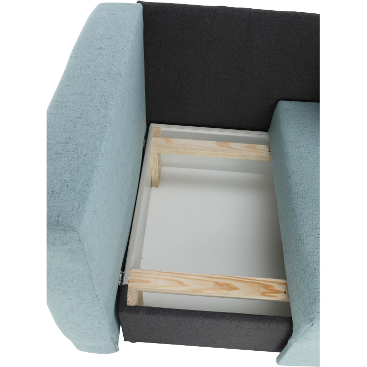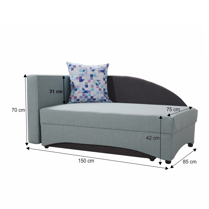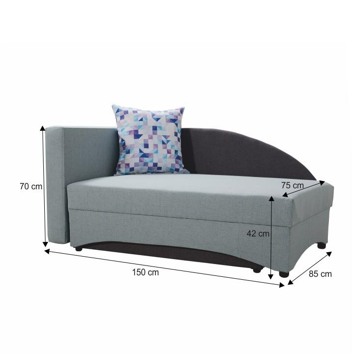 ;"Rozkládací křeslo s úložným prostorem, levé provedení, BELLA Materiál: látka Barva: mentol/ šedá Rozměry (ŠxHxV): 150x85x70 cm, Plocha na spaní (ŠxH): 80X198 cm Výška sedu: 42 cm Hloubka sedu: 75 cm Výška spodního prostoru od podlahy: 3 cm Nosnost: 70 kg Rozkládání automat. Kvalitní bonelové sezení. Dodávané v demontu. Možnost objednání v 6 barevných odstínech látky Cable v ceně 10.190 Kč. Při individuální objednávce je třeba zaplatit 20% zálohu z dané částky. Po uhrazení zálohy bude Vaša objednávka zadána do výroby. Doba dodání 6-8 týdnů.