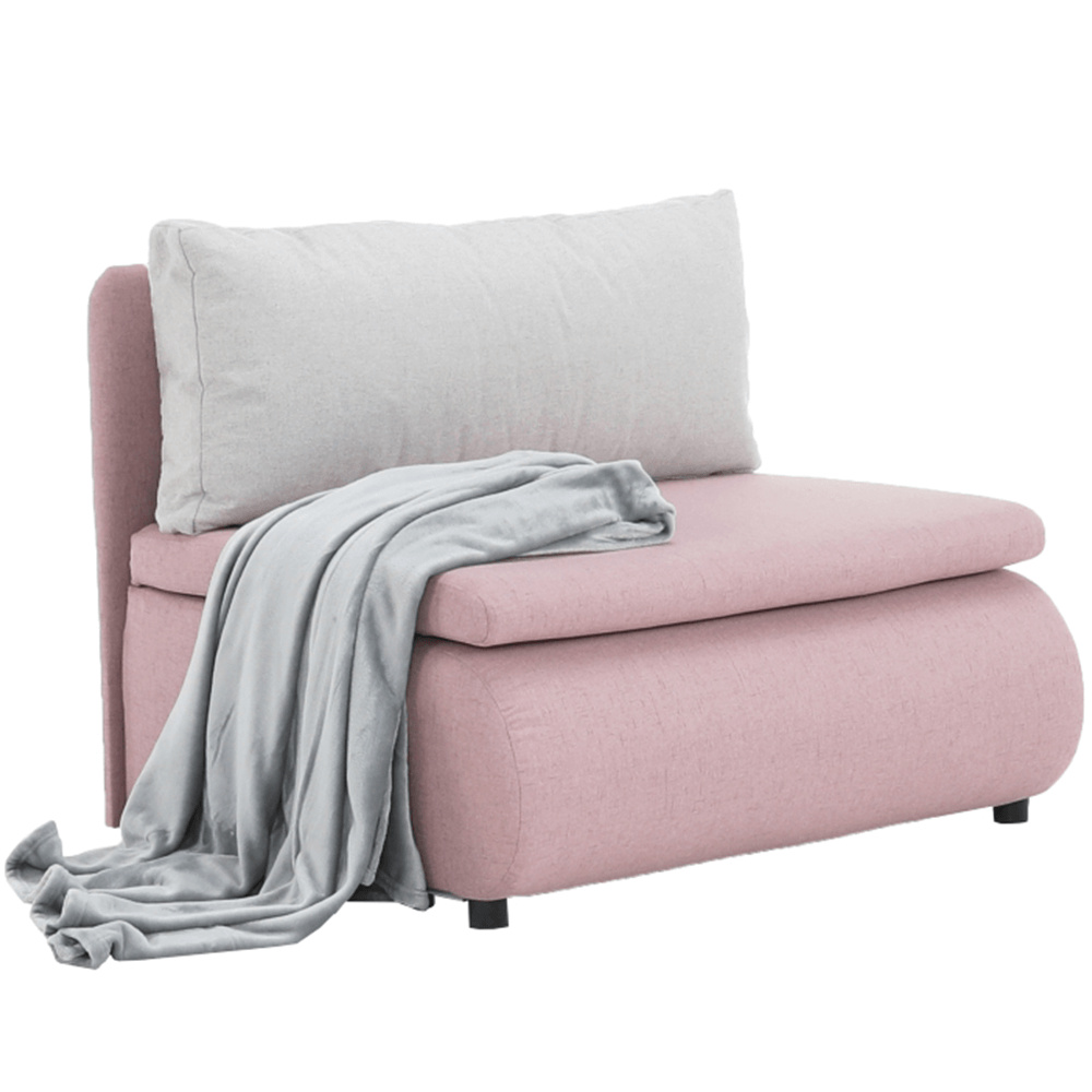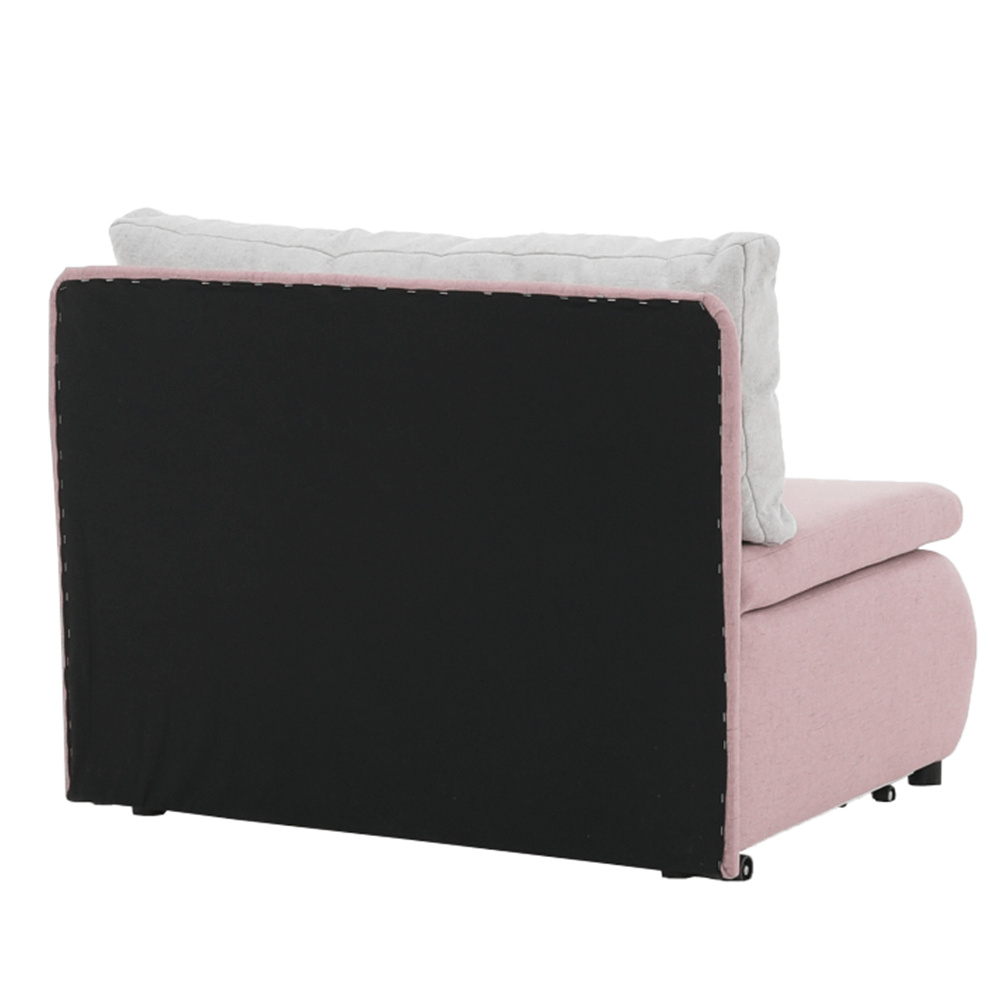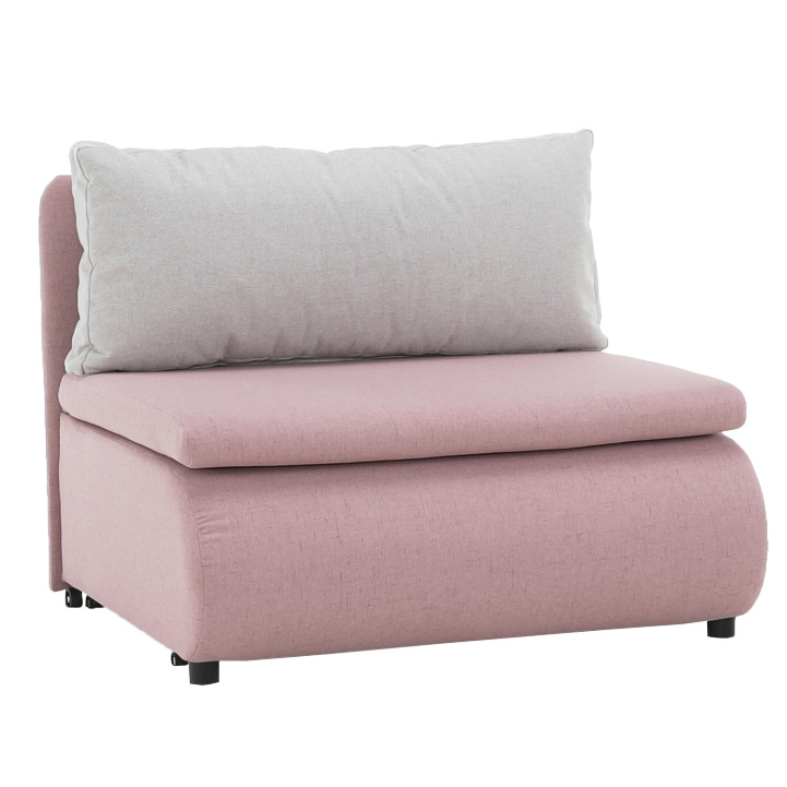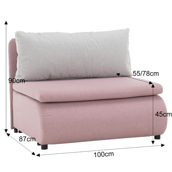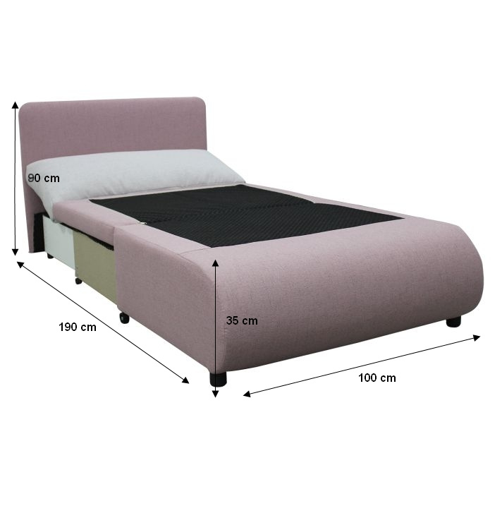 ;"Materiál: látka Cablo Oděruodolnost textilie podle testu Martindale: 72 000 oděrek Barva: růžová 12 / světlešedá 13 Rozměry (ŠxHxV): 100x87x90 cm Plocha na spaní (ŠxD): 100x190 cm Výška sedu: 45 cm Výška spodního prostoru od podlahy: 5 cm Hloubka sedu s polštářem: 55 cm Hloubka sedu bez polštáře: 78 cm Výška lůžka po rozložení: 35 cm Podpěrný polštář (ŠxV): 100x40 cm Nosnost: 70 kg S úložným prostorem funkce rozkládání Molitanová výplň sedáku Dodávané s polštářem Polštář se vzorem Na nožičkách, kolečka Dodávané v demontu