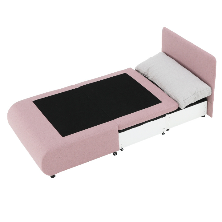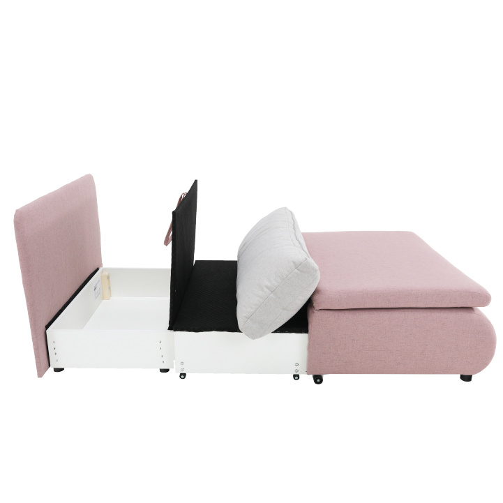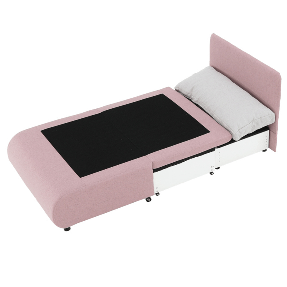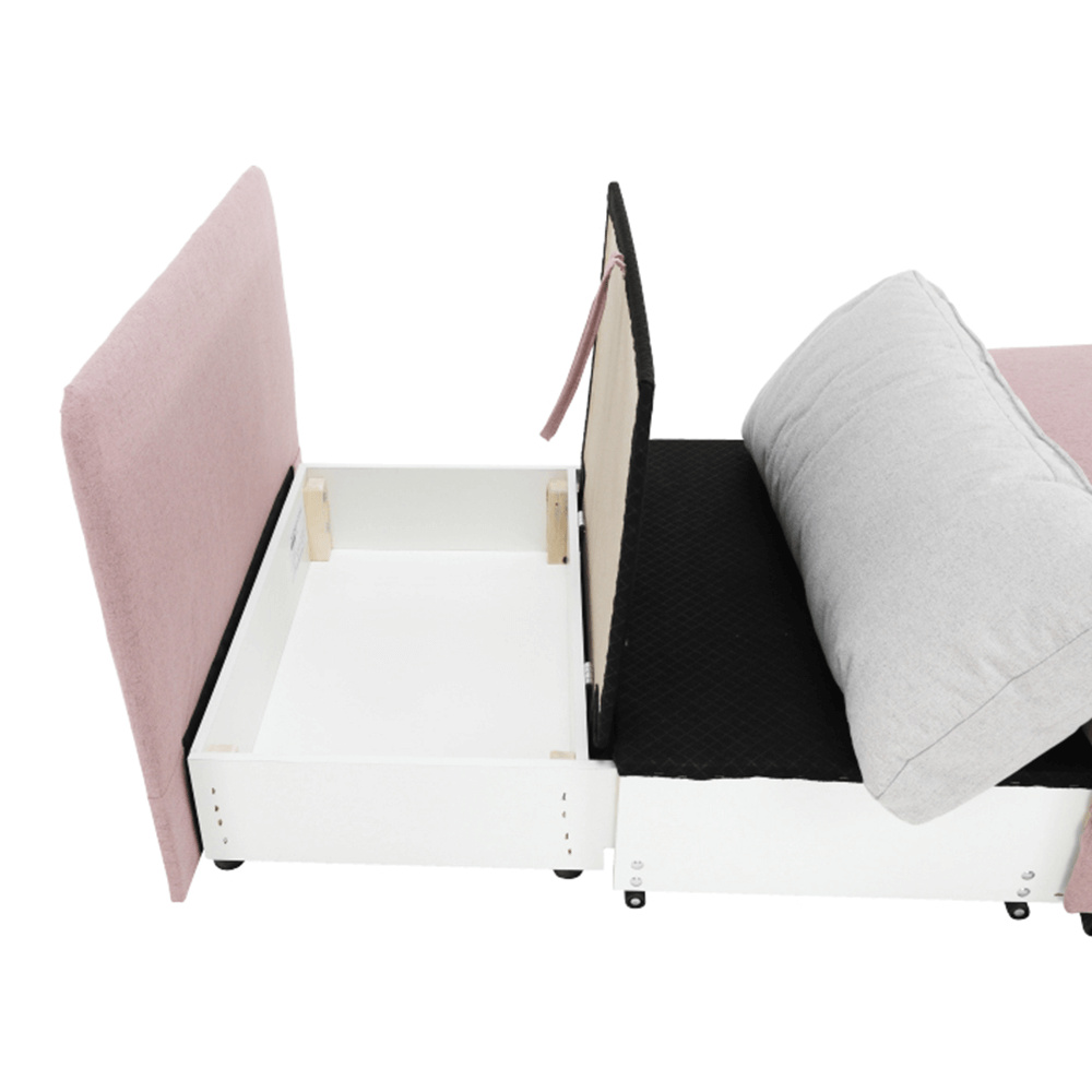 ;"Materiál: látka Cablo Oděruodolnost textilie podle testu Martindale: 72 000 oděrek Barva: růžová 12 / světlešedá 13 Rozměry (ŠxHxV): 100x87x90 cm Plocha na spaní (ŠxD): 100x190 cm Výška sedu: 45 cm Výška spodního prostoru od podlahy: 5 cm Hloubka sedu s polštářem: 55 cm Hloubka sedu bez polštáře: 78 cm Výška lůžka po rozložení: 35 cm Podpěrný polštář (ŠxV): 100x40 cm Nosnost: 70 kg S úložným prostorem funkce rozkládání Molitanová výplň sedáku Dodávané s polštářem Polštář se vzorem Na nožičkách, kolečka Dodávané v demontu