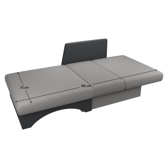 Materiál: látka Malmo 90/96 Oděruodolnost textilie podle testu Martindale: 30 000 oděrů Barva: šedá/tmavě šedá Rozměry (ŠxHxV): 104x78x70 cm Plocha na spaní: 75x185 cm Výška sedu: 34,5 cm Hloubka sedu: 57 cm Šířka sedu: 92 cm Výška opěrky na ruku od země: 59 cm Rozměry opěrky na záda (ŠxV): 75x36 cm Nosnost na osobu: 90 kg Dodáváno s polštářem Rozměry polštáře (ŠxV): 48x40cm Rozkládací Úložný prostor Univerzální provedení Výplň: pur pěna T28 Dodáváno v monte