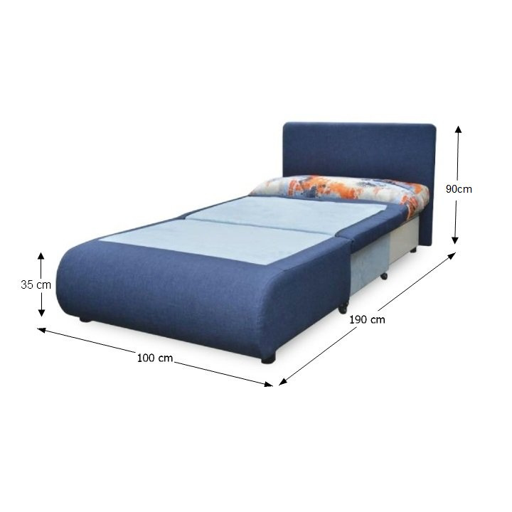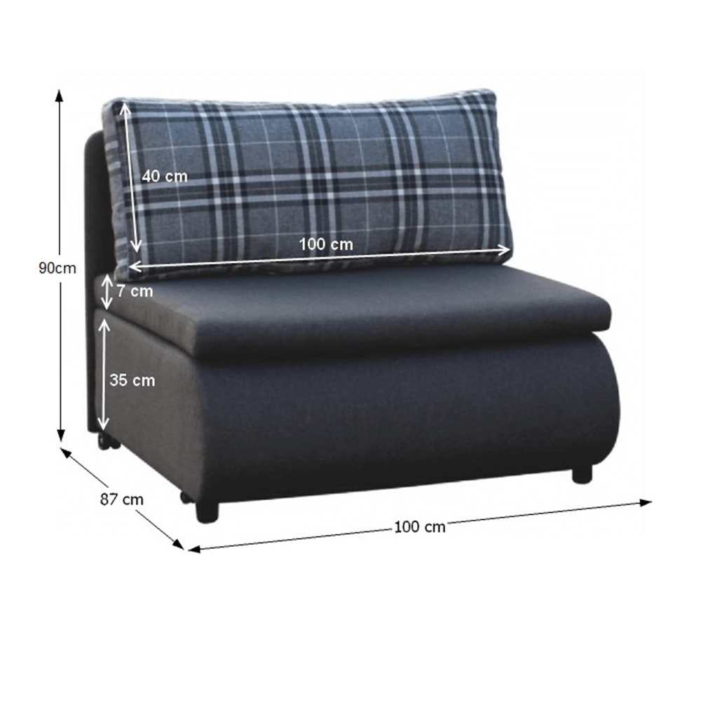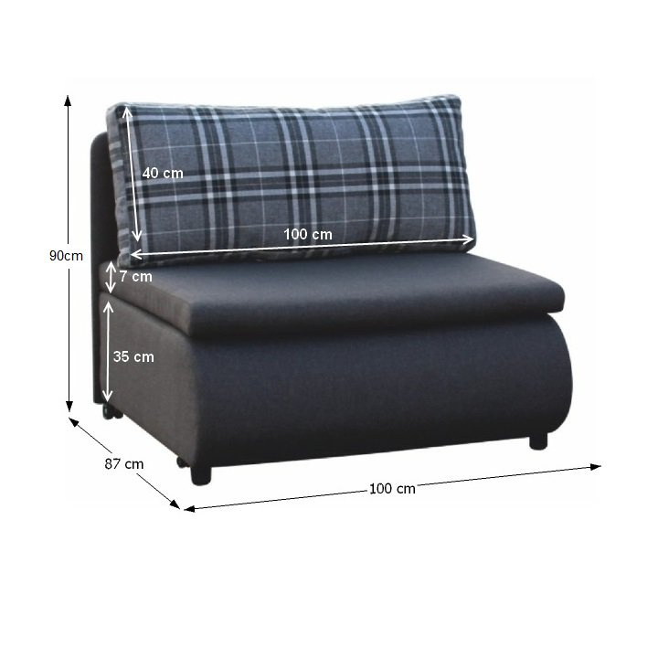 ;"Materiál: látka Savana Oděruodolnost textilie podle testu Martindale: 80 000 oděrek Barva: šedá 05 / vzor Rozměry (ŠxHxV): 100x87x90 cm Rozměr plochy na spaní (ŠxD): 100x190 cm Výška sedu: 45 cm Výška spodního prostoru od podlahy: 5 cm Hloubka sedu s polštářem: 55 cm Hloubka sedu bez polštáře: 78 cm Výška lůžka po rozložení: 35 cm Rozměr polštáře ŠxV: 100x40 cm Nosnost: 70 kg S úložným prostorem funkce rozkládání Molitanová výplň sedáku Dodávané s polštářem Polštář se vzorem Na nožičkách, kolečka Dodávané v demontu Možnost objednání ve 3 barevných provedeních látky Savana v kombinaci se vzorovanou látkou v ceně 9.190,-Kč. Při individuální objednávce je třeba zaplatit 20% zálohu z dané částky. Po uhrazení zálohy bude Vaša objednávka zadána do výroby. Dodací lhůta 6-8 týdnů.