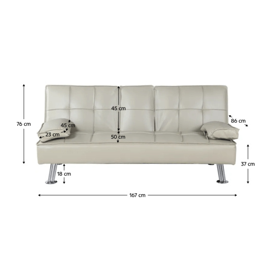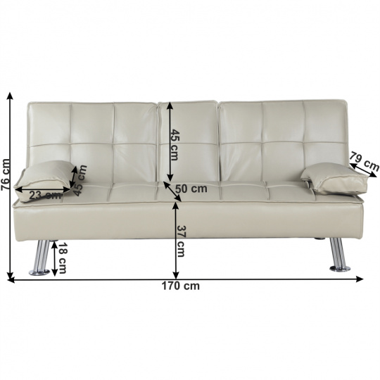 Rozkládací pohovka Goldia New Materiál: ekokůže / kov Oděruodolnost textilie podle testu Martindale: 100 000 oděrek Barva: béžová Rozměry (ŠxHxV): 167x86x76 cm Plocha na spaní (ŠxD): 167x100 cm Výška sedu: 37 cm Hloubka sedu: 50 cm Nosnost: 160 kg Dodávané v demontu.