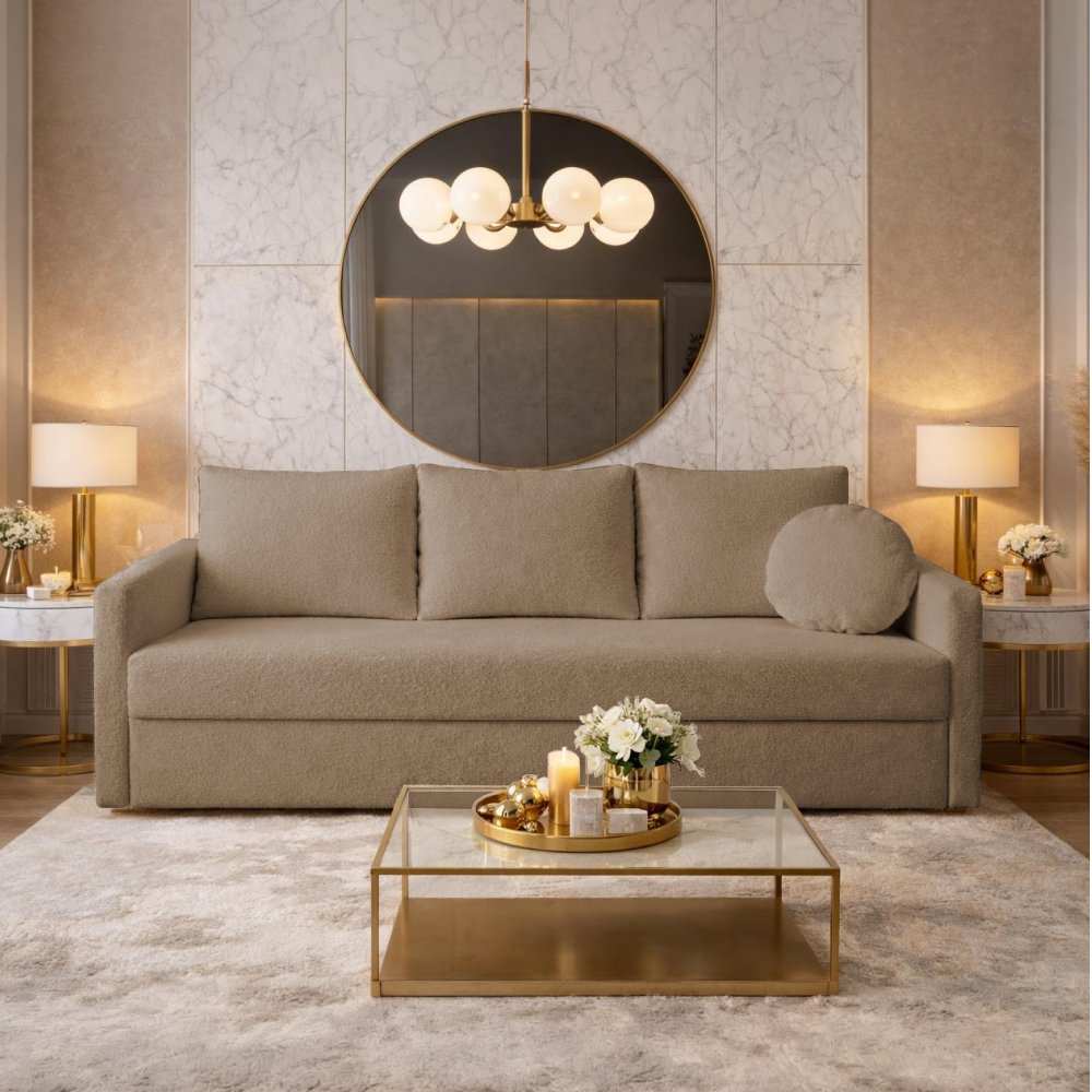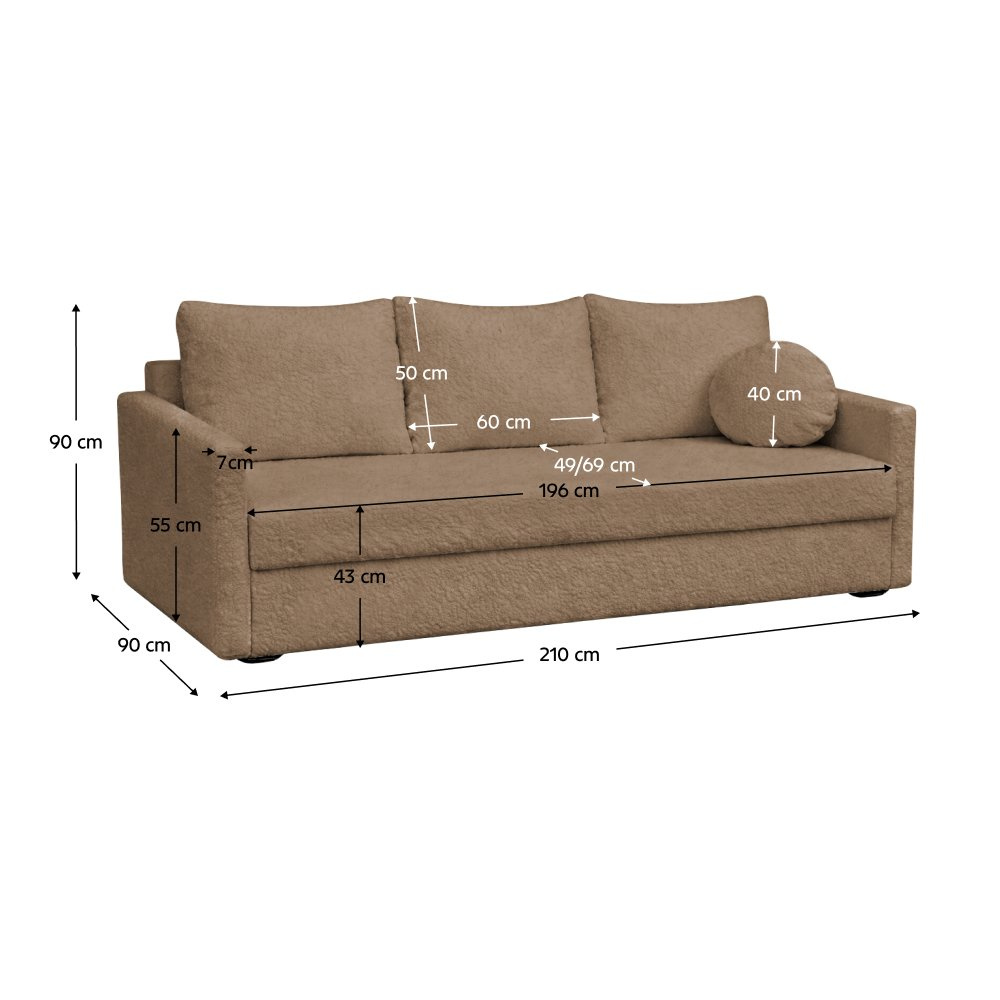 Materiál: látka Murano 835 Oděruodolnost textilie podle testu Martindale: 100 000 oděrů Barva: hnědá Rozměry (ŠxHxV): 210x90x90 cm Plocha na spaní (ŠxD): 145x196 cm Výška sedu: 43 cm Hloubka sedu: 49/69 cm Rozměry opěrky na ruku (ŠxHxV): 7x90x55 cm Šířka sedáku: 196 cm Celočalouněná Rozkládací S úložným prostorem Na nožičkách Materiál nožiček: plast Barva nožiček: černá Výška spodního prostoru od podlahy: 2 cm Výplň: bonelová pružina/pur pěna Nosnost na osobu: 90 kg Tři opěrkové polštáře Rozměry opěrkových polštářů (ŠxV): 65x50 cm Jeden dekorativní polštář Rozměry dekorativního polštáře (ŠxV): 40x40 cm Praktická Moderní Dodáváno v demontu Možnost objednání v 6 barevných provedeních látky Murano v ceně 19 490 Kč. Při individuální objednávce je třeba zaplatit 20% zálohu z dané částky. Po uhrazení zálohy bude Váš požadavek zadán do výroby. Dodací lhůta 6-8 týdnů.