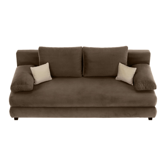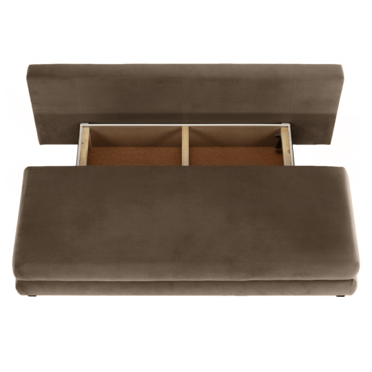 Rozkládací pohovka Cliv s úložným prostorem v barevném provedení cappuccino látka Aria / béžová. Rozměry (ŠxHxV): 206x90x73 / 85 cm Plocha na spaní (ŠxD): 145x200 cm Nosnost na osobu: 90 kg Dodávané s polštáři. Dodávané v demontu.