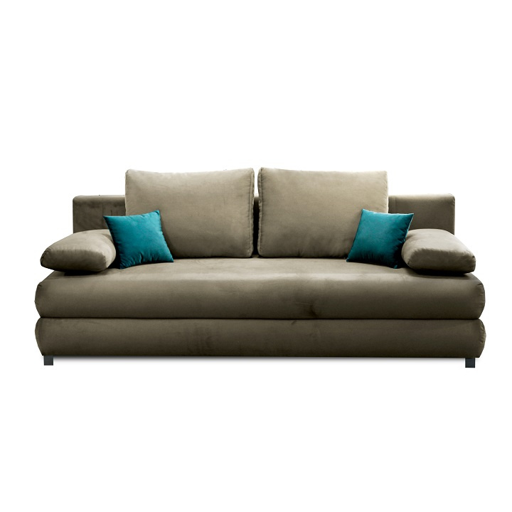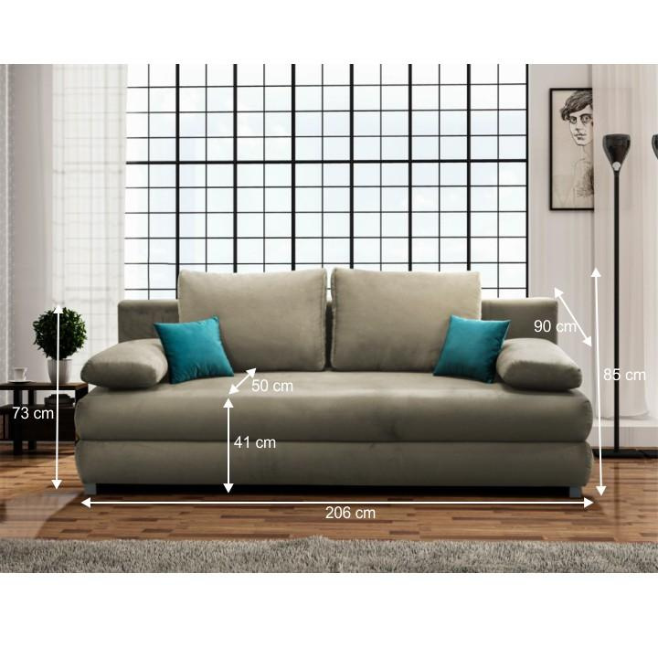 Materiál: látka Asti 03 Oděruodolnost textilie podle testu Martindale: 90 000 oděrů Barva: šedobéžová Taupe Rozměry (ŠxHxV): 199x91x92 cm Plocha na spaní (ŠxD): 116x199 cm Výška sedu: 46 cm Hloubka sedu: 55 cm Rozkládací S úložným prostorem Nosnost na osobu: 90 kg Výška spodního prostoru od podlahy: 13 cm 2 dekorativní polštářky Rozměr po
