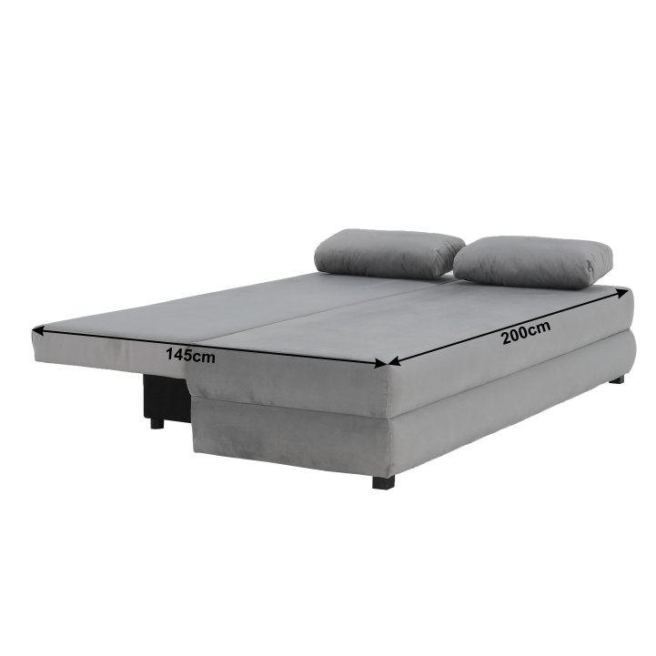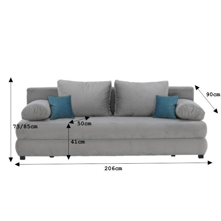 Materiál: látka Asti 23 Oděruodolnost textilie podle testu Martindale: 90 000 oděrů Barva: šedá Rozměry (ŠxHxV): 199x91x92 cm Plocha na spaní (ŠxD): 116x199 cm Výška sedu: 46 cm Hloubka sedu: 55 cm Rozkládací S úložným prostorem Nosnost na osobu: 90 kg Výška spodního prostoru od podlahy: 13 cm 2 dekorativní polštářky Rozměr polštářů (ŠxH)