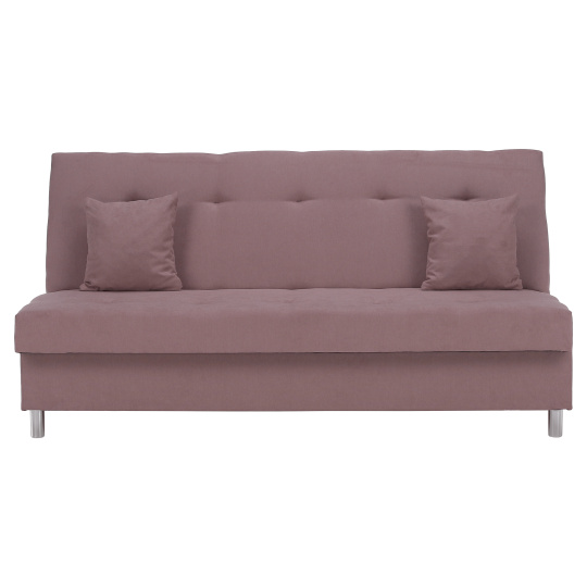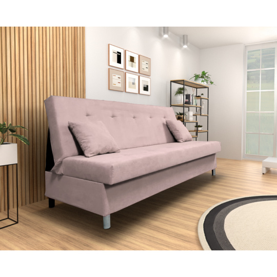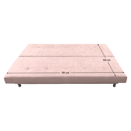 Materiál: látka Soro 61 Oděruodolnost textilie podle testu Martindale: 90 000 oděrů Barva: růžová Rozměry (ŠxHxV): 194x89x94 cm Plocha na spaní (ŠxD): 115x194 cm Výška sedu: 45 cm Hloubka sedu: 52 cm Nosnost na osobu: 90 kg Plastové nožičky Barva nožiček: stříbrná Výška nožiček: 7 cm Rozkládací Rozkládání systémem KLIK KLAK S úložným prostorem Dodávána s polštáři Praktická Moderní Dodáváno v demontu