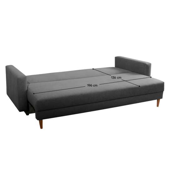 Matariál: látka Paros 06 Oděruodolnost textilie podle testu Martindale: 50 000 oděrů Barva: šedá Rozměry (ŠxHxV): 219x91x70/85 cm Plocha na spaní (ŠxH): 136x196 cm Hloubka sedu: 54 cm Výška sedu: 39 cm Šířka sedu: 195 cm Šířka opěrky na ruku: 12 cm Nosnost na osobu: 90 kg Dřevěné nožičky Barva nožiček: buk Výška nožiček: 13 cm Celočalouněná Rozkládací S úložným prostorem Dodávána s polštáři Rozměry opěrkového polštáře (ŠxV): 97x48 cm Rozměry dekorativního polštářku (ŠxV): 42x14 cm Výplň: pružina typu bonel Praktická Moderní Dodáváno v demontu Možnost objednání ve 4 barevných provedeních látky Paros a v 6 barevných provedeních látky Kronos ceně 16.990 Kč s dodací lhůtou 6-8 týdnů. Při individuální objednávce je třeba zaplatit 20% zálohu z dané částky. Po uhrazení zálohy bude Váš požadavek zadán do výroby.