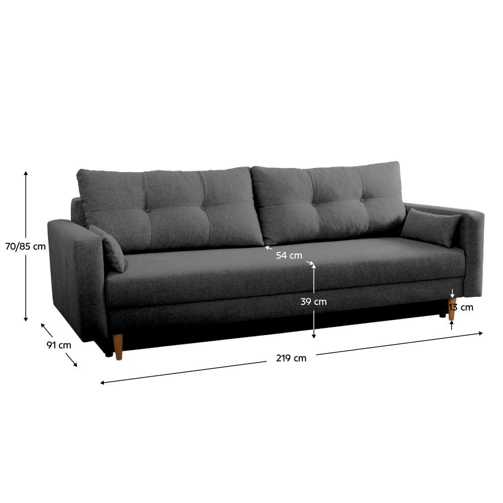 Matariál: látka Paros 06 Oděruodolnost textilie podle testu Martindale: 50 000 oděrů Barva: šedá Rozměry (ŠxHxV): 219x91x70/85 cm Plocha na spaní (ŠxH): 136x196 cm Hloubka sedu: 54 cm Výška sedu: 39 cm Šířka sedu: 195 cm Šířka opěrky na ruku: 12 cm Nosnost na osobu: 90 kg Dřevěné nožičky Barva nožiček: buk Výška nožiček: 13 cm Celočalouněná Rozkládací S úložným prostorem Dodávána s polštáři Rozměry opěrkového polštáře (ŠxV): 97x48 cm Rozměry dekorativního polštářku (ŠxV): 42x14 cm Výplň: pružina typu bonel Praktická Moderní Dodáváno v demontu Možnost objednání ve 4 barevných provedeních látky Paros a v 6 barevných provedeních látky Kronos ceně 16.990 Kč s dodací lhůtou 6-8 týdnů. Při individuální objednávce je třeba zaplatit 20% zálohu z dané částky. Po uhrazení zálohy bude Váš požadavek zadán do výroby.