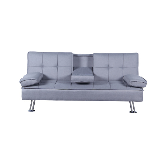 Rozkládací pohovka GOLDIA NEW Materiál: látka/kov Oděruodolnost látky podle testu Martindale: 60 000 oděrů Barva: šedá Rozměry (ŠxHxV): 167x86x76 cm Rozkládací Plocha na spaní (ŠxD): 167x100 cm Sklápěcí střední opěrka Výška sedu: 37 cm Hloubka sedu: 50 cm Výška zádové opěrky: 45 cm Výška nožiček: 18 cm Opěrka na ruce (ŠxH): 23x45 cm Nosnost: 160 kg Dodáváno se dvěma polštáři Dekorativní prošití opěradla a sedáku Dodáváno v demontu