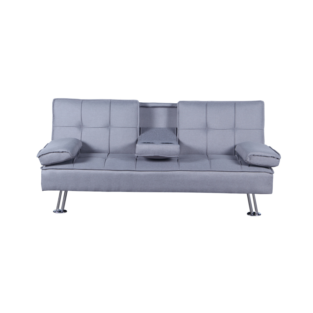 Rozkládací pohovka GOLDIA NEW Materiál: látka/kov Oděruodolnost látky podle testu Martindale: 60 000 oděrů Barva: šedá Rozměry (ŠxHxV): 167x86x76 cm Rozkládací Plocha na spaní (ŠxD): 167x100 cm Sklápěcí střední opěrka Výška sedu: 37 cm Hloubka sedu: 50 cm Výška zádové opěrky: 45 cm Výška nožiček: 18 cm Opěrka na ruce (ŠxH): 23x45 cm Nosnost: 160 kg Dodáváno se dvěma polštáři Dekorativní prošití opěradla a sedáku Dodáváno v demontu