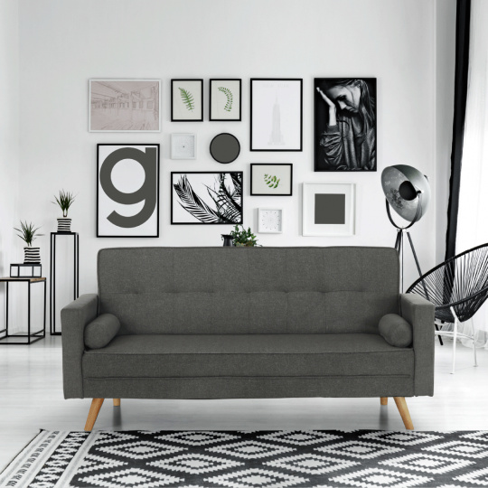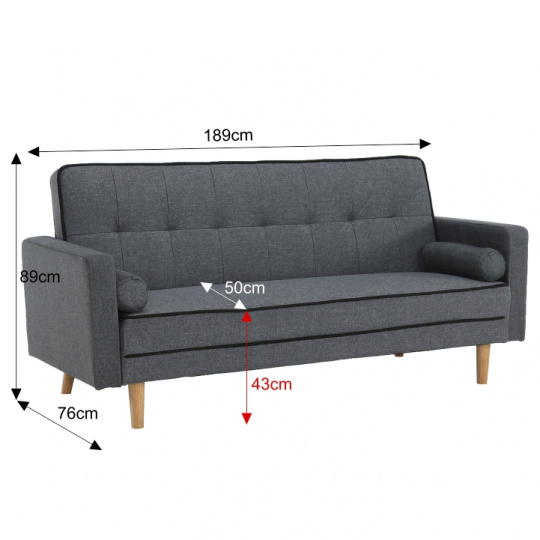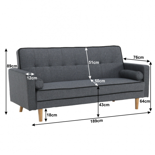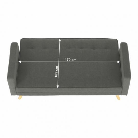 Rozkládací pohovka OtisA Materiál: látka / dřevo Oděruodolnost textilie podle testu Martindale: 40 000 oděrek Barva: šedá Rozměry (ŠxHxV): 186x75x89 cm Plocha na spaní (ŠxD): 167x105 cm Výška sedu: 43 cm Hloubka sedu: 50 cm Výška spodního prostoru od podlahy: 18 cm Nosnost: 160 kg Dodávané v demontu.