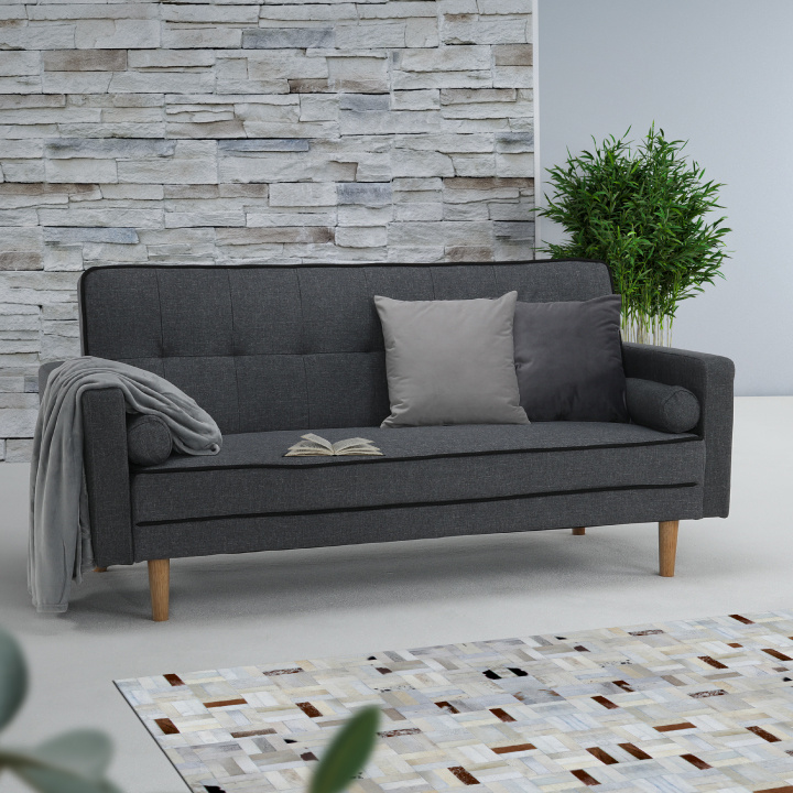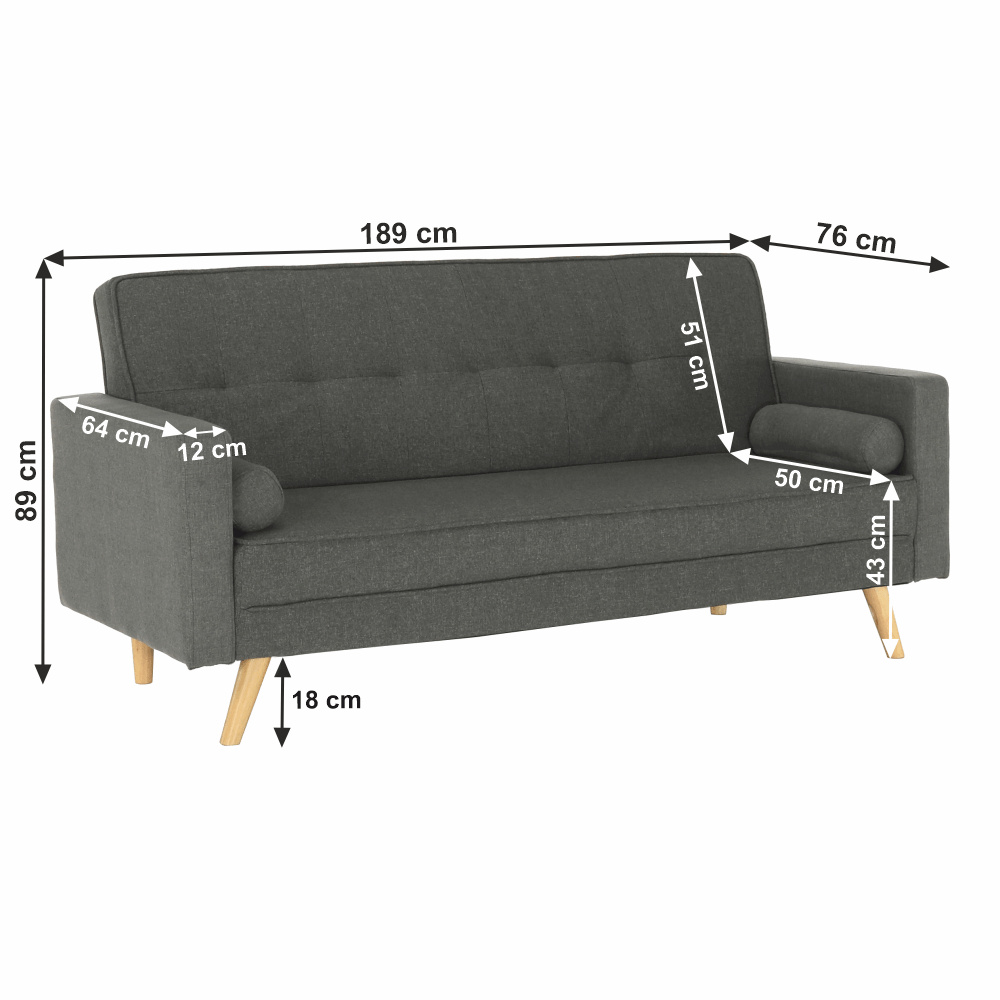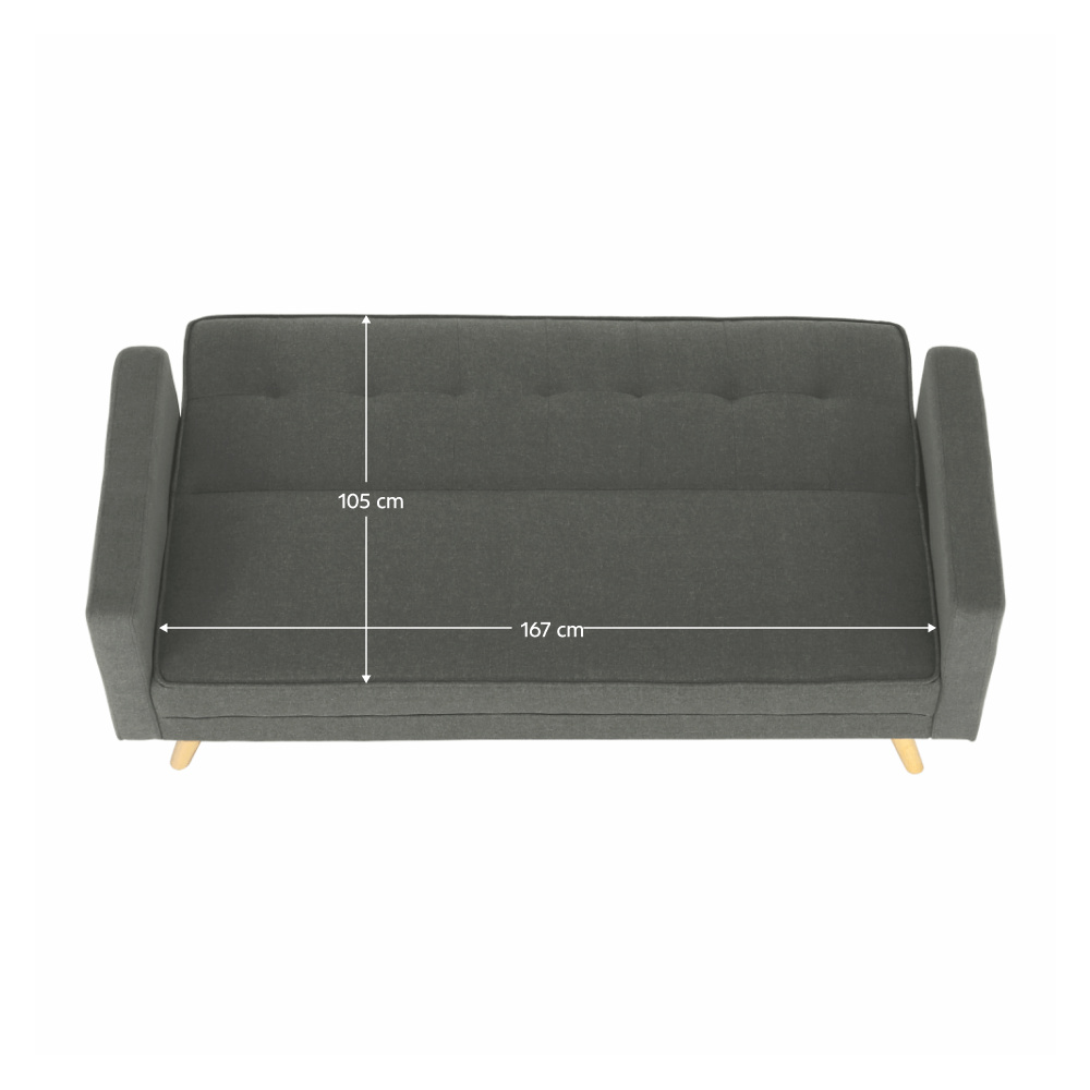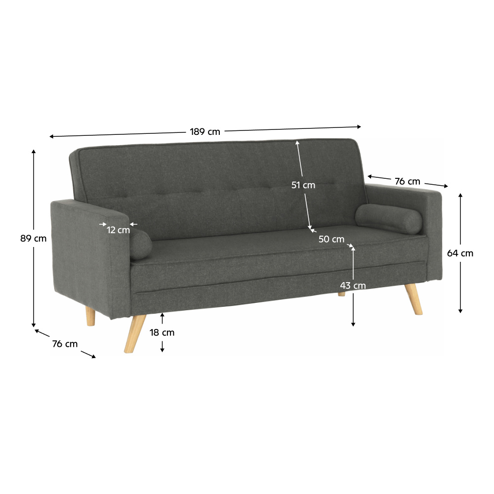 Rozkládací pohovka OtisA Materiál: látka / dřevo Oděruodolnost textilie podle testu Martindale: 40 000 oděrek Barva: šedá Rozměry (ŠxHxV): 186x75x89 cm Plocha na spaní (ŠxD): 167x105 cm Výška sedu: 43 cm Hloubka sedu: 50 cm Výška spodního prostoru od podlahy: 18 cm Nosnost: 160 kg Dodávané v demontu.