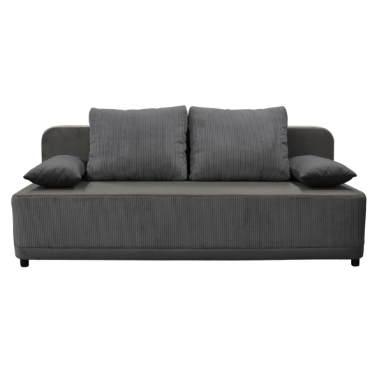 Materiál: látka Manila 16/Poso 60 Oděruodolnost textilie Manila podle testu Martindale: 58 000 oděrů Oděruodolnost textilie Poso podle testu Martindale: 90 000 oděrů Barva: šedá Rozměry (ŠxHxV): 197x83x77/90 cm Plocha na spaní (ŠxD): 141x196 cm Výška sedu: 44 cm Hloubka sedu: 48/74 cm Materiál nožiček: plast Barva nožiček: černá Výška spodního prostoru od podlahy: 5 cm Výplň: pur pěna Celočalouněná Rozkládací Úložný prostor Dodávána s polštáři Rozměry velkého polštáře (ŠxV): 65x50 cm Rozměry malého polštáře (ŠxH): 33x60 cm Nosnost na osobu: 90 kg Praktická Moderní Dodáváno v demontu
