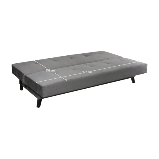 Materiál: látka Trinity 15 Oděruodolnost textilie podle testu Martindale: 55 000 oděrů Barva: šedá Rozměry (ŠxHxV): 197x84x92 cm Plocha na spaní (ŠxD): 118x197 cm Výška sedu: 44 cm Hloubka sedu: 54 cm Nosnost na osobu: 90 kg Jádro sezení: pružina falista/pur pěna Na nožičkách Materiál nožiček: dřevo Barva nožiček: černá Výška spodního prostoru od podlahy: 12,8 cm Rozkládací Úložný prostor Voděodolná látka Dodáváno v demontu.