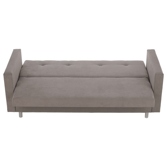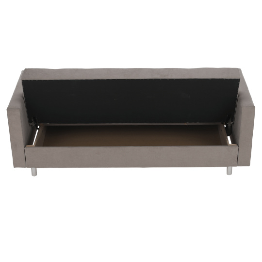 Materiál: látka Soro 23 Oděruodolnost látky podle testu Martindale: 90 000 oděrů Barva: šedobéžová Taupe Rozměry (ŠxHxV): 215x80x94 cm Plocha na spaní (ŠxD): 114x192 cm Výška sedu: 46 cm Hloubka sedu: 55 cm Na nožičkách Materiál nožiček: plast Barva nožiček: stříbrná Výška spodního prostoru od podlahy: 10 cm Nosnost na osobu: 90 kg Výplň: molitan Dekorativní prošívání s designovými prvky Rozkládací Úložný prostor Praktická Moderní Dodáváno v demontu