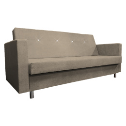 Materiál: látka Soro 23 Oděruodolnost látky podle testu Martindale: 90 000 oděrů Barva: šedobéžová Taupe Rozměry (ŠxHxV): 215x80x94 cm Plocha na spaní (ŠxD): 114x192 cm Výška sedu: 46 cm Hloubka sedu: 55 cm Na nožičkách Materiál nožiček: plast Barva nožiček: stříbrná Výška spodního prostoru od podlahy: 10 cm Nosnost na osobu: 90 kg Výplň: molitan Dekorativní prošívání s designovými prvky Rozkládací Úložný prostor Praktická Moderní Dodáváno v demontu