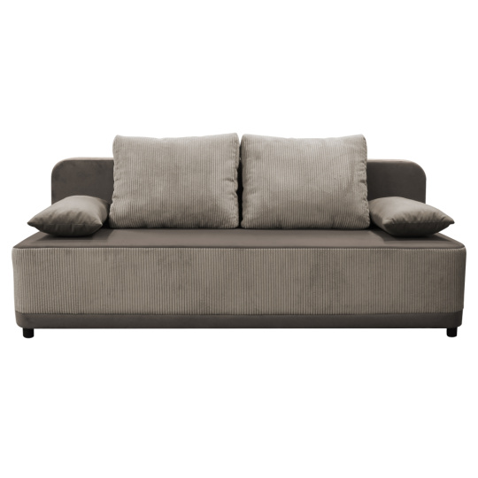 Materiál: látka Manila 05/Poso 03 Oděruodolnost textilie Manila podle testu Martindale: 58 000 oděrů Oděruodolnost textilie Poso podle testu Martindale: 90 000 oděrů Barva: šedobéžová Taupe Rozměry (ŠxHxV): 197x83x77/90 cm Plocha na spaní (ŠxD): 141x196 cm Výška sedu: 44 cm Hloubka sedu: 48/74 cm Materiál nožiček: plast Barva nožiček: černá Výška spodního prostoru od podlahy: 5 cm Výplň: pur pěna Celočalouněná Rozkládací Úložný prostor Dodávána s polštáři Rozměry velkého polštáře (ŠxV): 65x50 cm Rozměry malého polštáře (ŠxH): 33x60 cm Nosnost na osobu: 90 kg Praktická Moderní Dodáváno v demontu